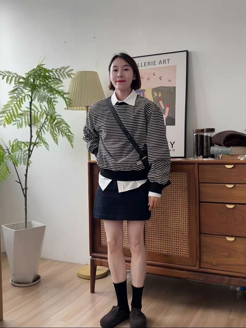 韩代同款,100%棉条纹卫衣,解锁慵懒韩系风,