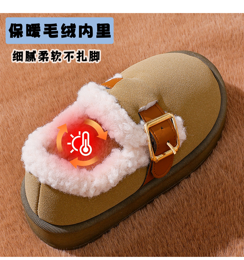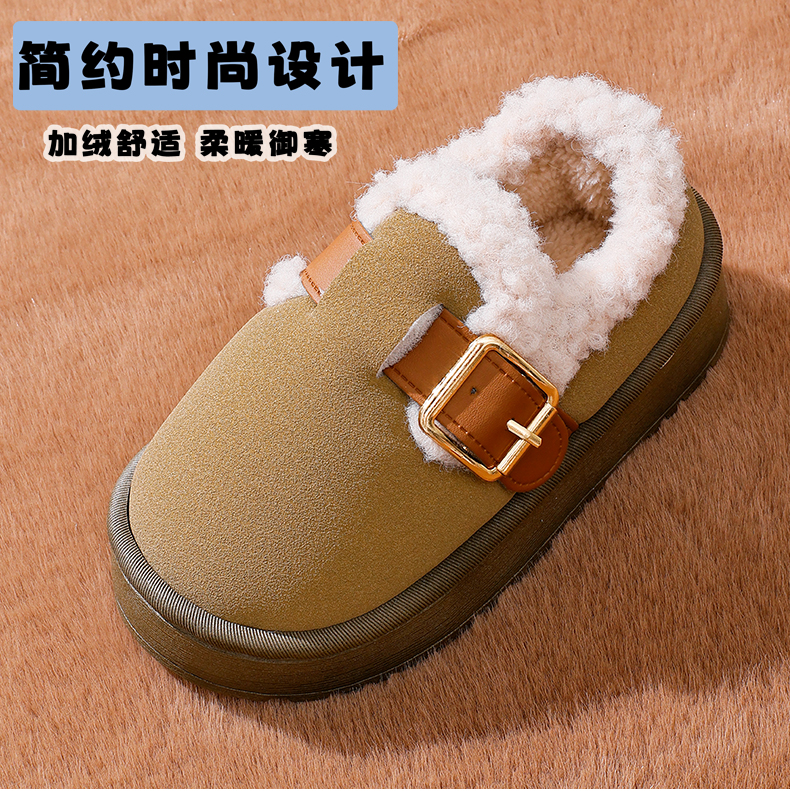 小黄鸭秋冬季新款男女童踩屎感厚底防滑亲子室内家居加绒保暖棉鞋24-44