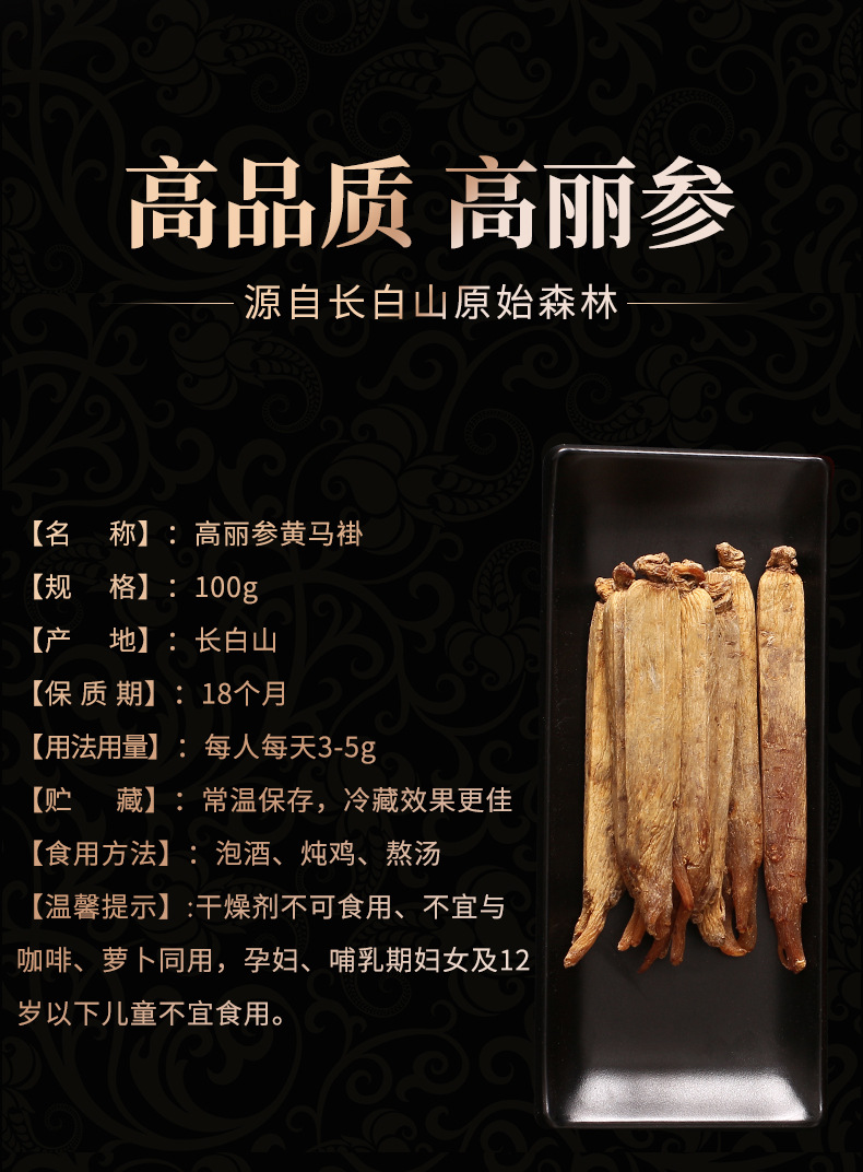 高丽参 100g 原皮无糖黄马褂 九蒸九晒 炖鸡炖汤 秋冬滋补不熏硫