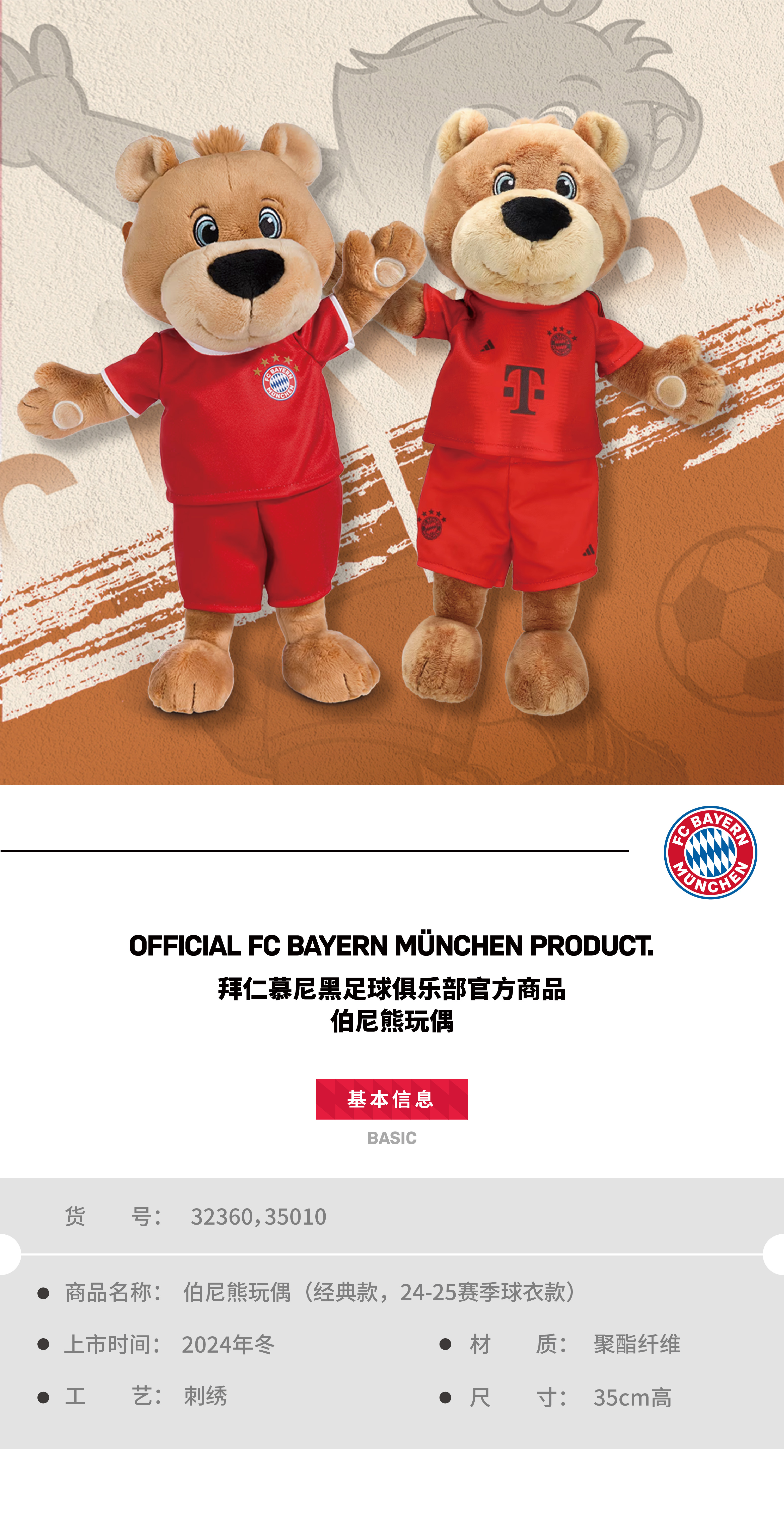【官方同款】拜仁慕尼黑足球俱乐部|berni毛绒玩偶球衣大熊