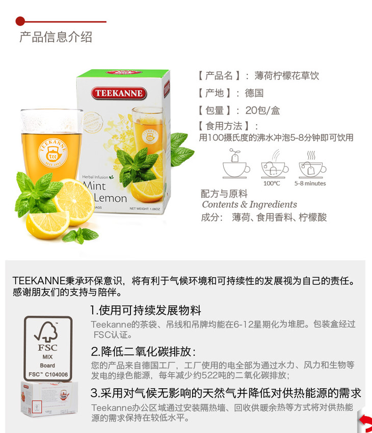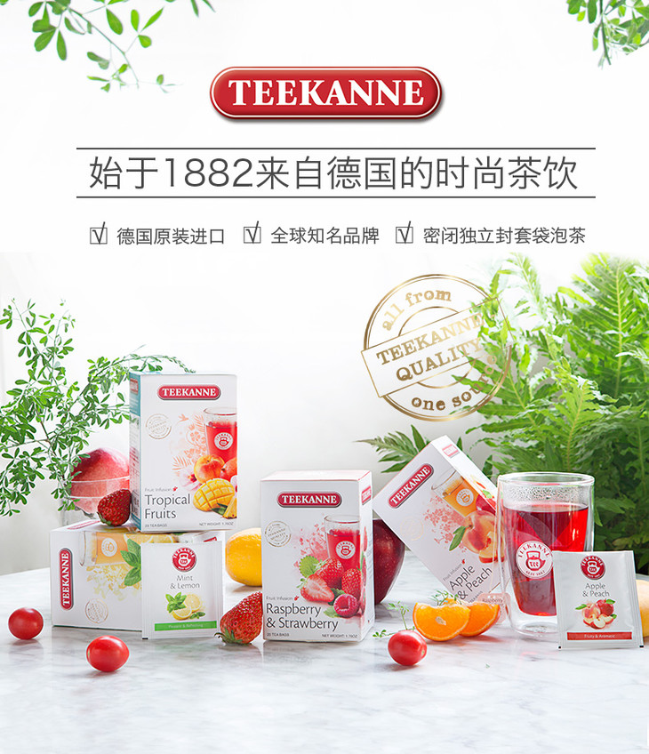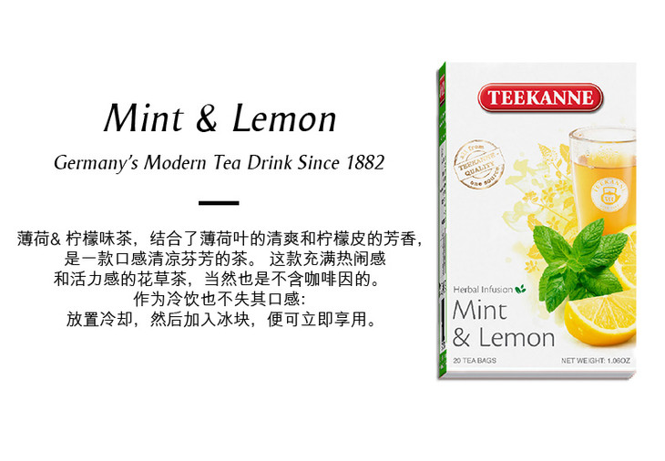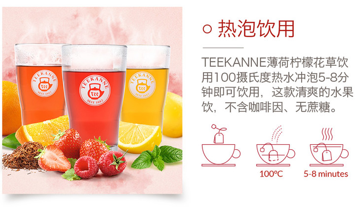 Teekanne 德国进口薄荷柠檬花草茶饮 水果茶袋泡茶包冷泡茶