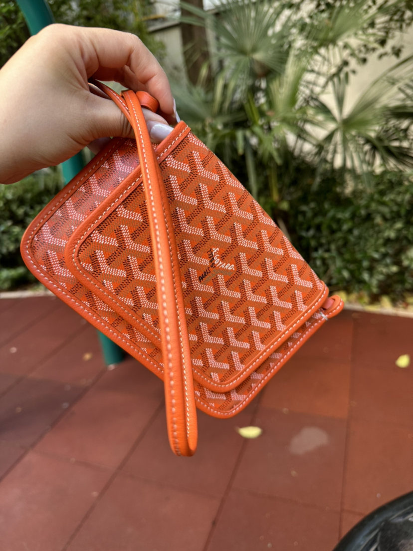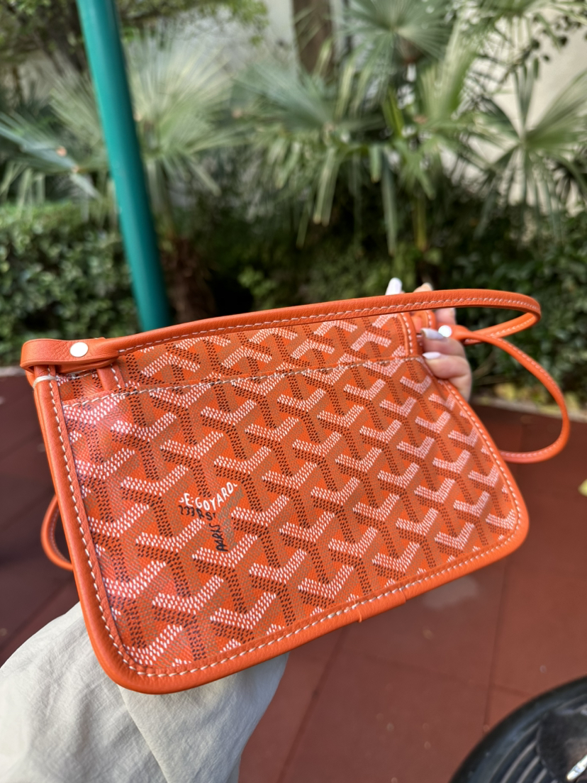 出门的时候拍了下,信封包,果汁橘色,着实好看,我包里头没防啥,就两个手机,promax加厚壳放进去刚好,另外还有个小手机,消毒纸巾,防晒口罩,出门就刚刚好