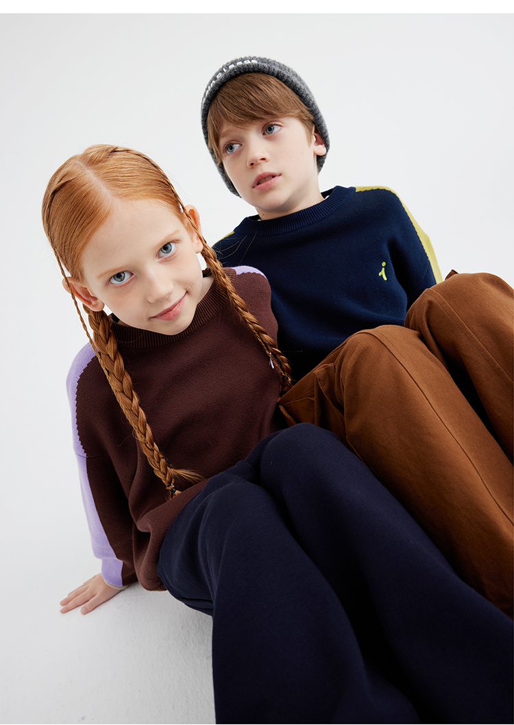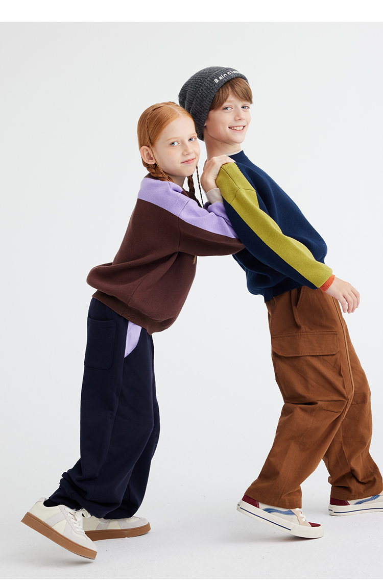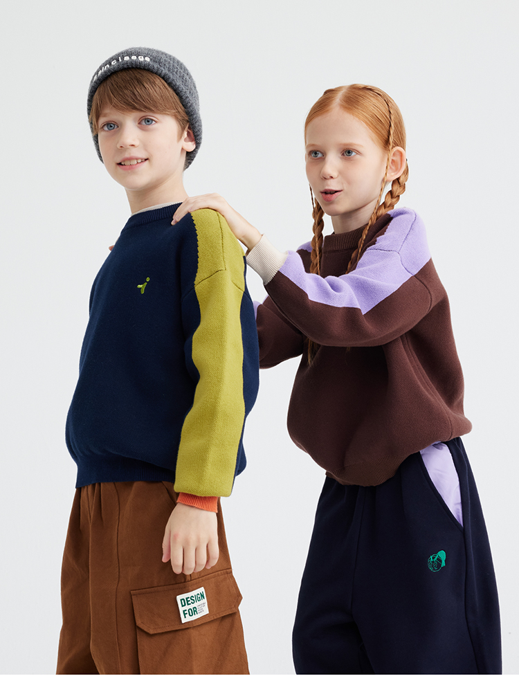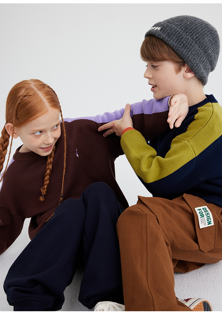 【咕噜日记】儿童拼色廓形圆领毛衣 PQMY2402