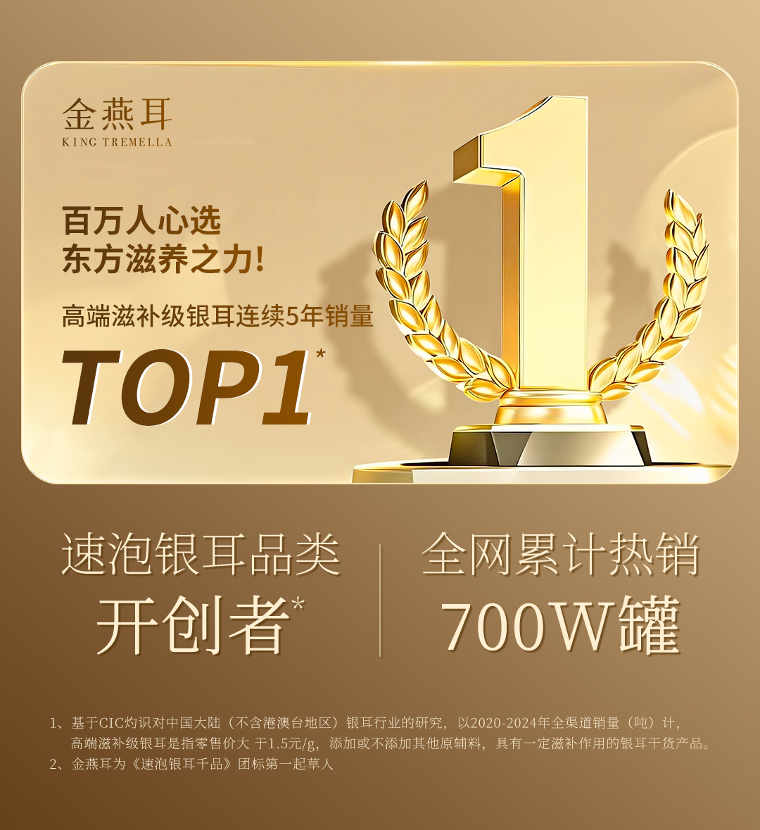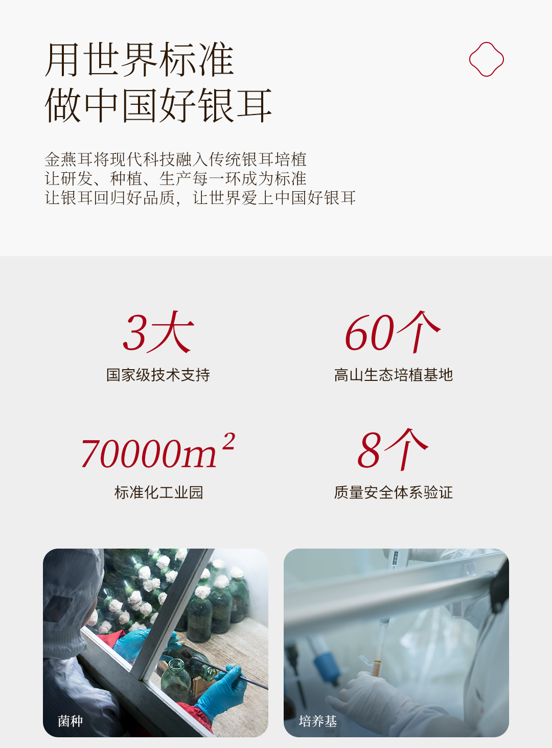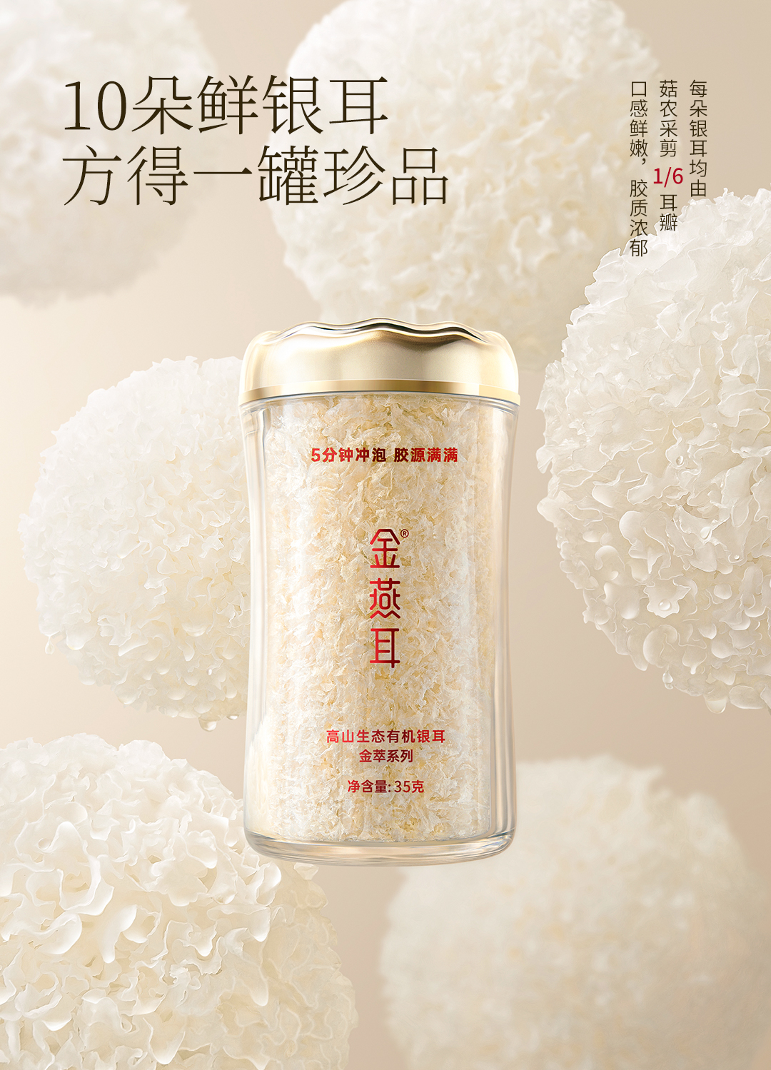 - 金燕耳 多胶金品银耳,滋养东方女性 开创高山生态有机银耳品类 连续两年银耳类目销量Top1 好银耳,天生金贵 引领银耳品质 让更多人吃到中国好银耳 成为高品质中国银耳标杆品牌