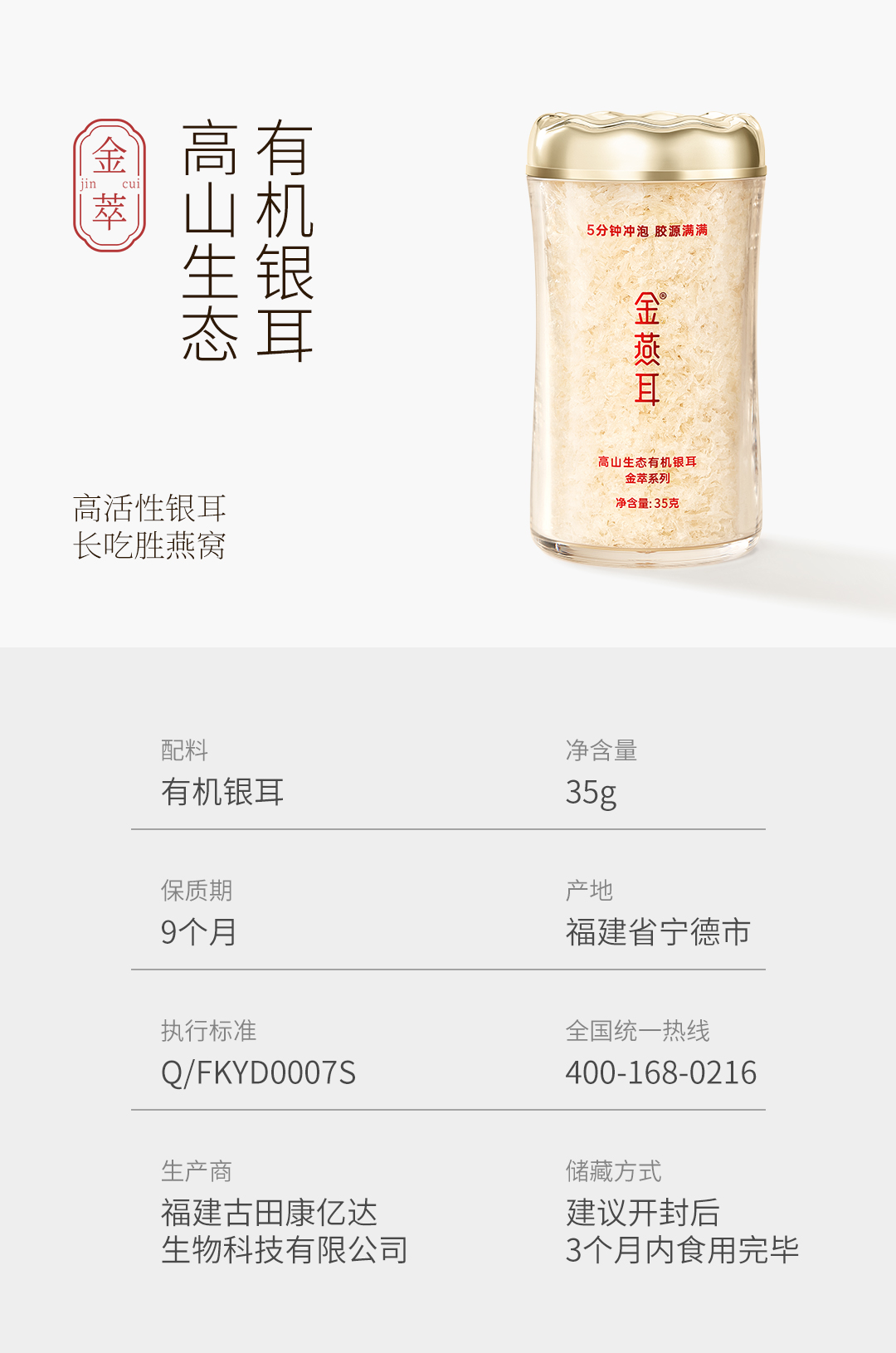 金燕耳【金萃系列】 小蛮腰金罐装35g 高山生态有机银耳 免煮速泡5分钟即食 3-4倍胶养精华