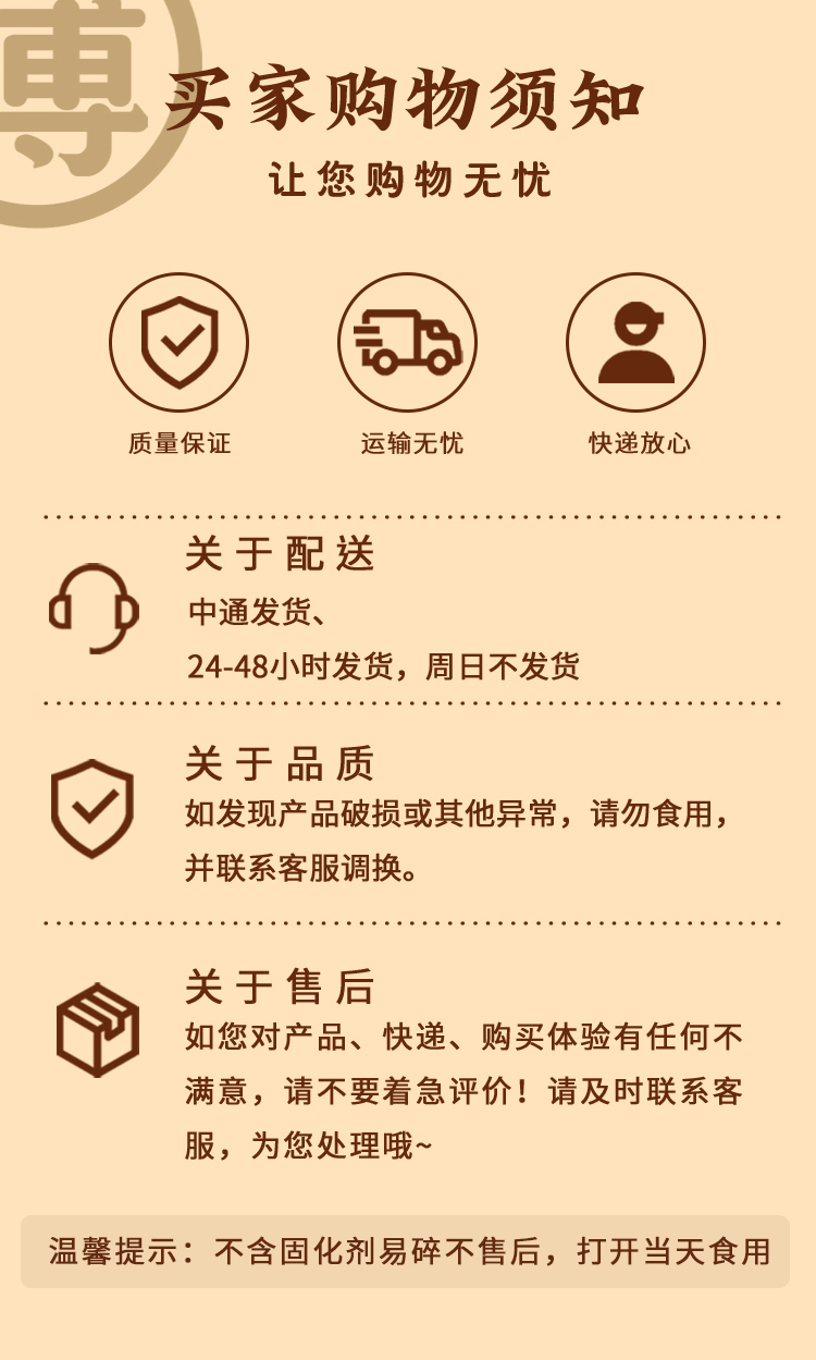 【售后说明】食品类,不支持7天无理由退换货!不支持拦截撤单拒收!
