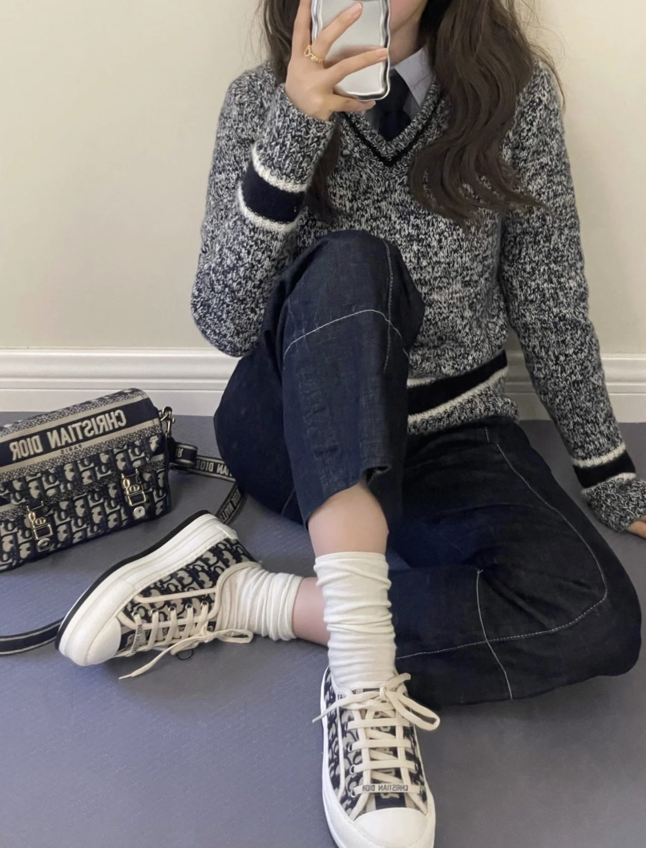 MIU-T 炒色藏蓝长袖打底