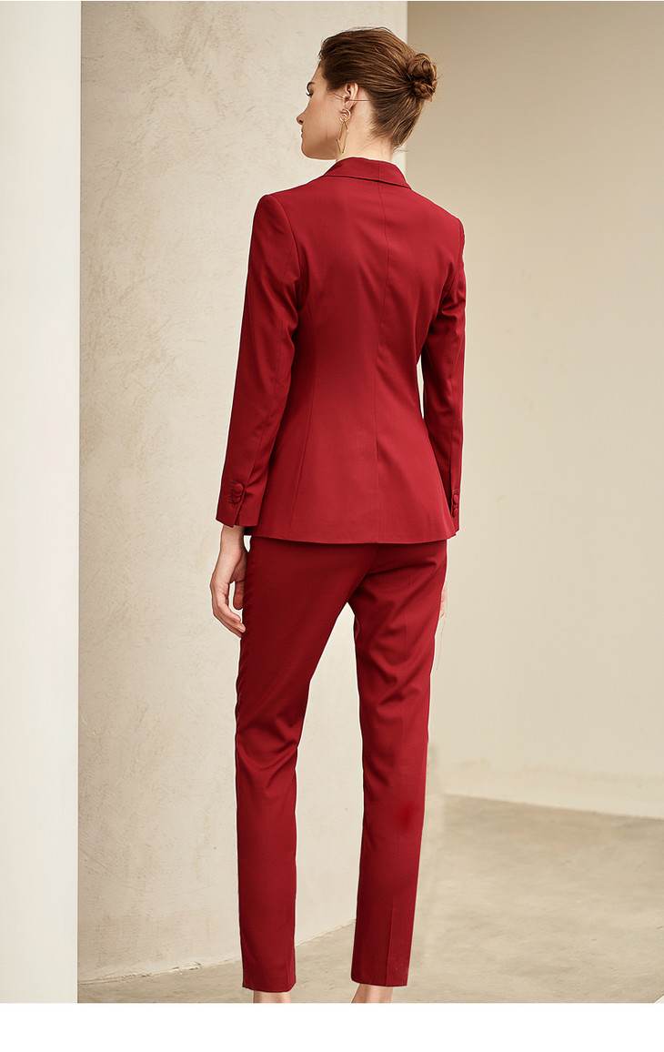 IWY/红色长袖西装九分裤套装203117C1+P1