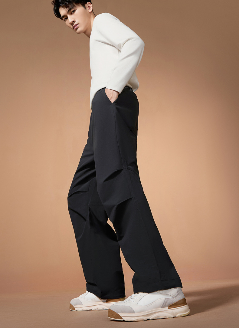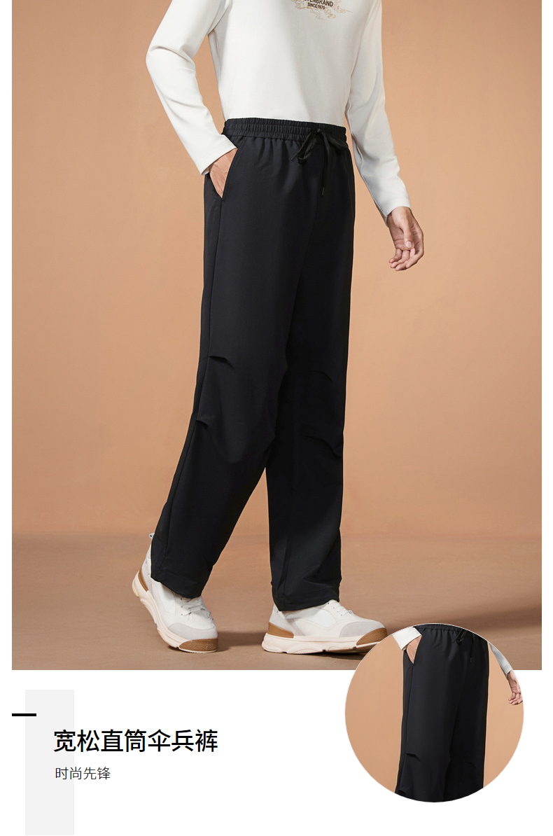 【直筒伞兵裤】柒牌男装便装长裤2025新品宽松微弹脚口松紧休闲裤130H70020