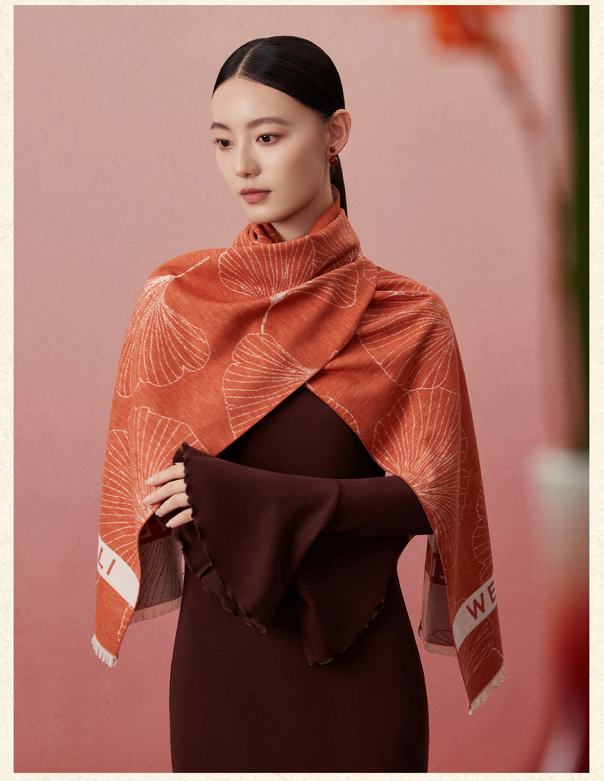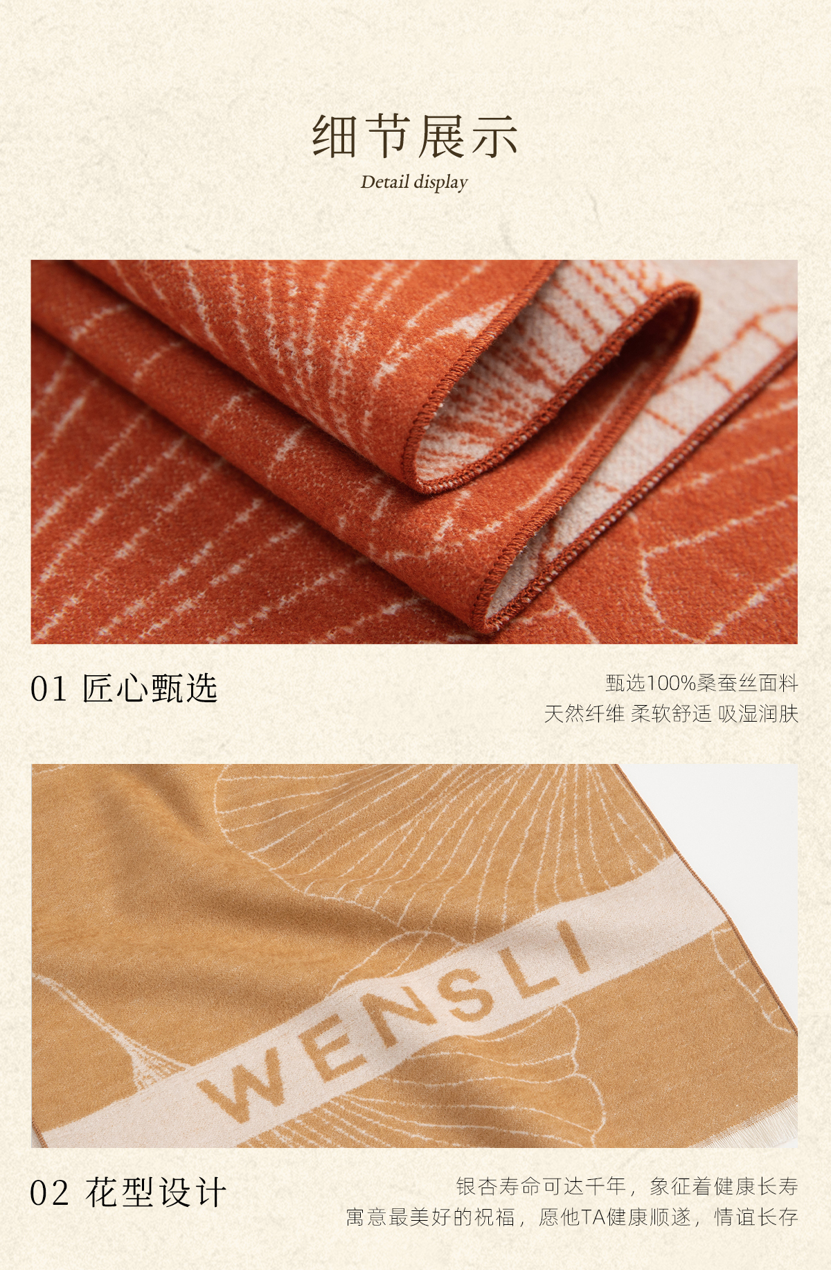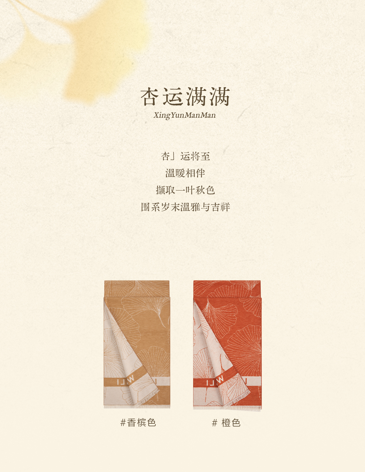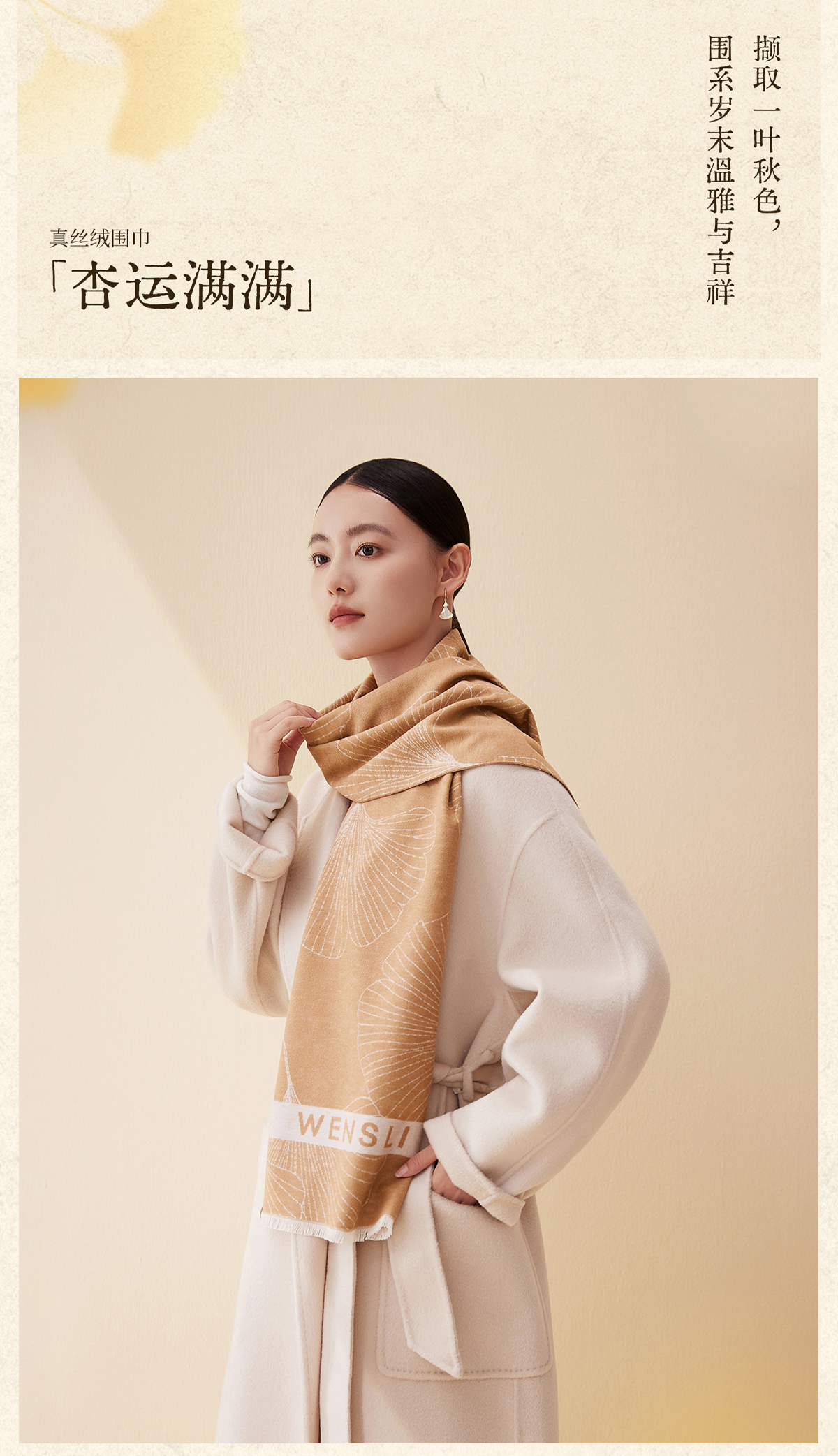 万事利“杏运满满”真丝绒围巾