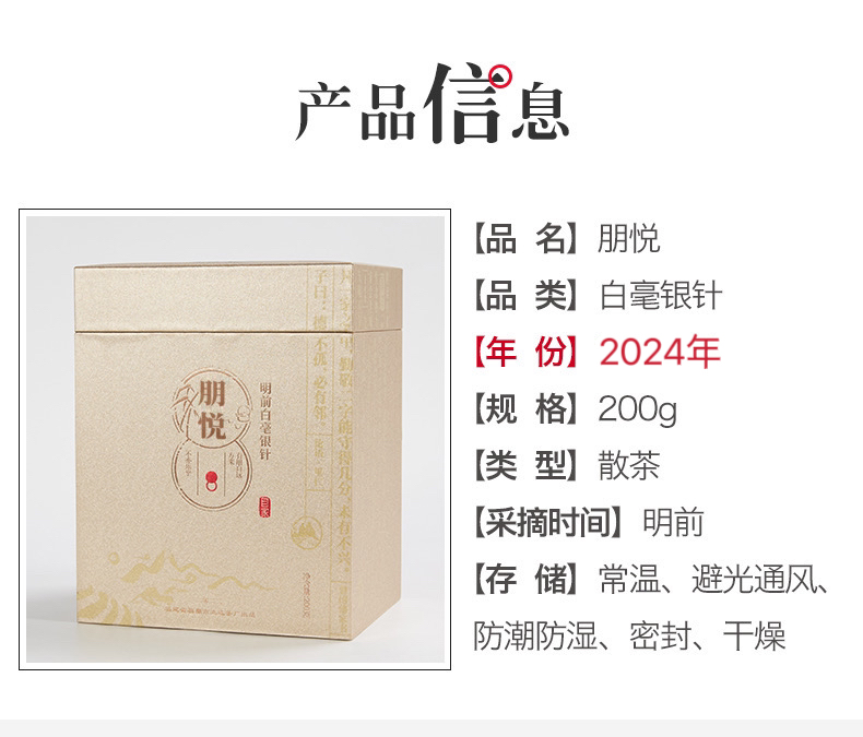 自家系列丨2024年 朋悦 明前白毫银针 200g盒