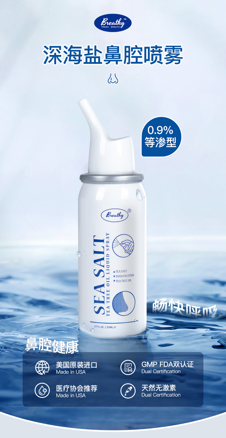 【商品名称】Breathy布雷辛苍耳尤加利抑菌膏(鼻通膏);Breathy布雷希茶树油海盐喷雾剂(鼻喷)