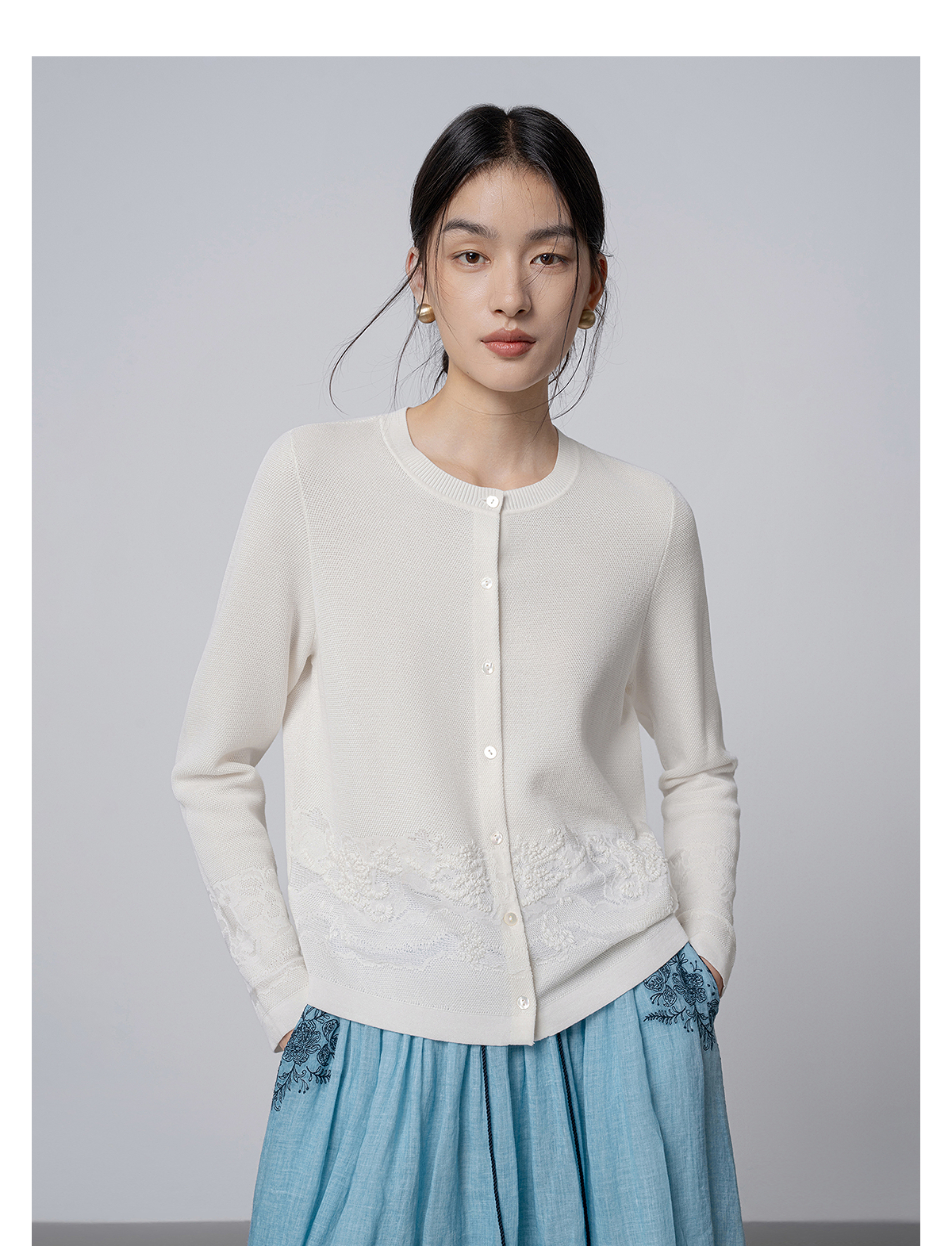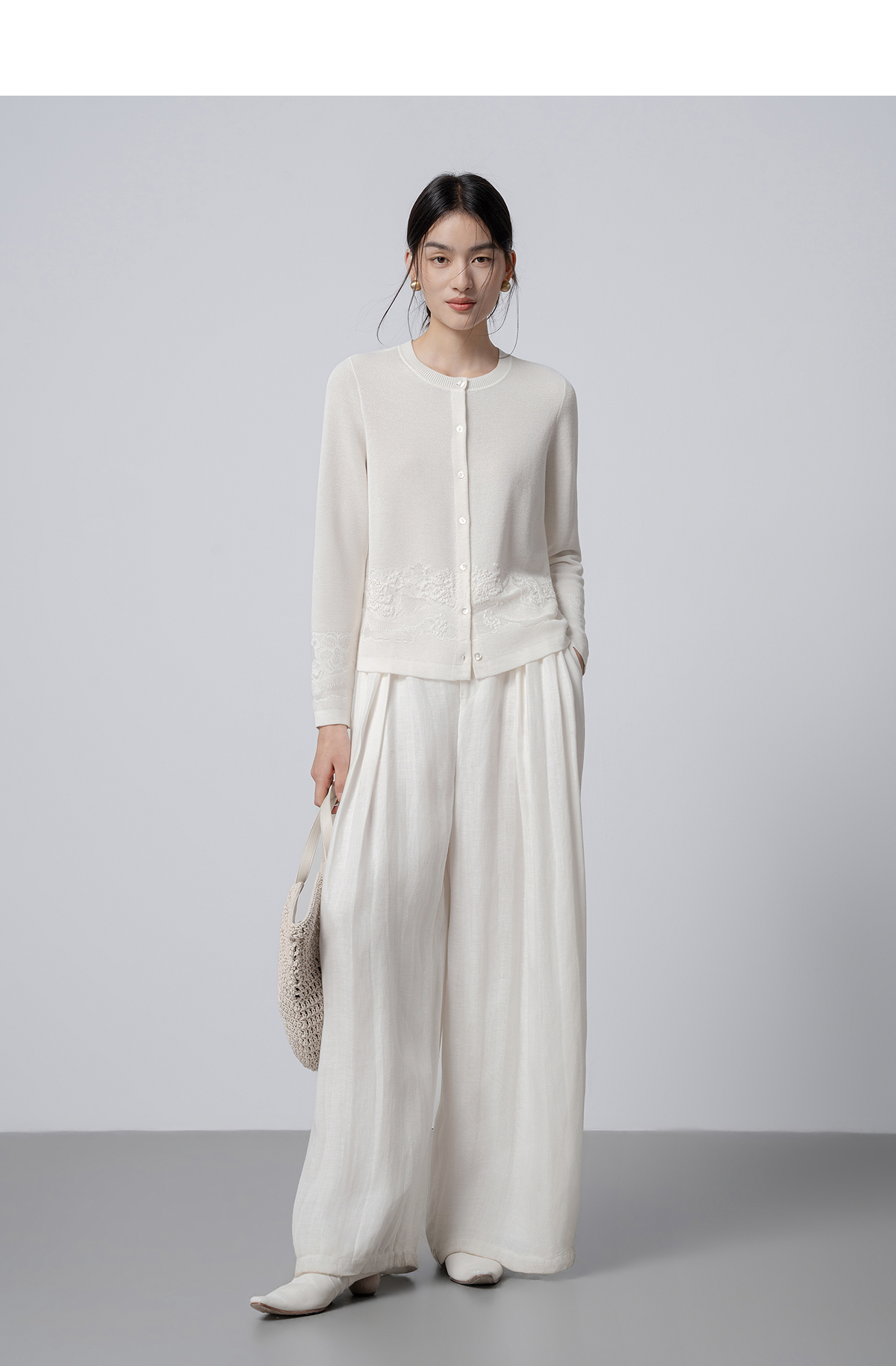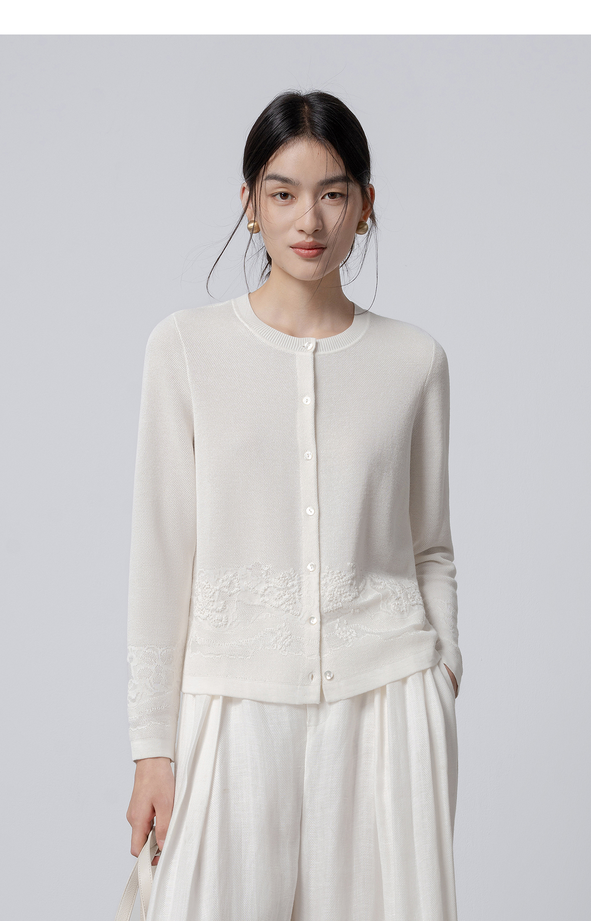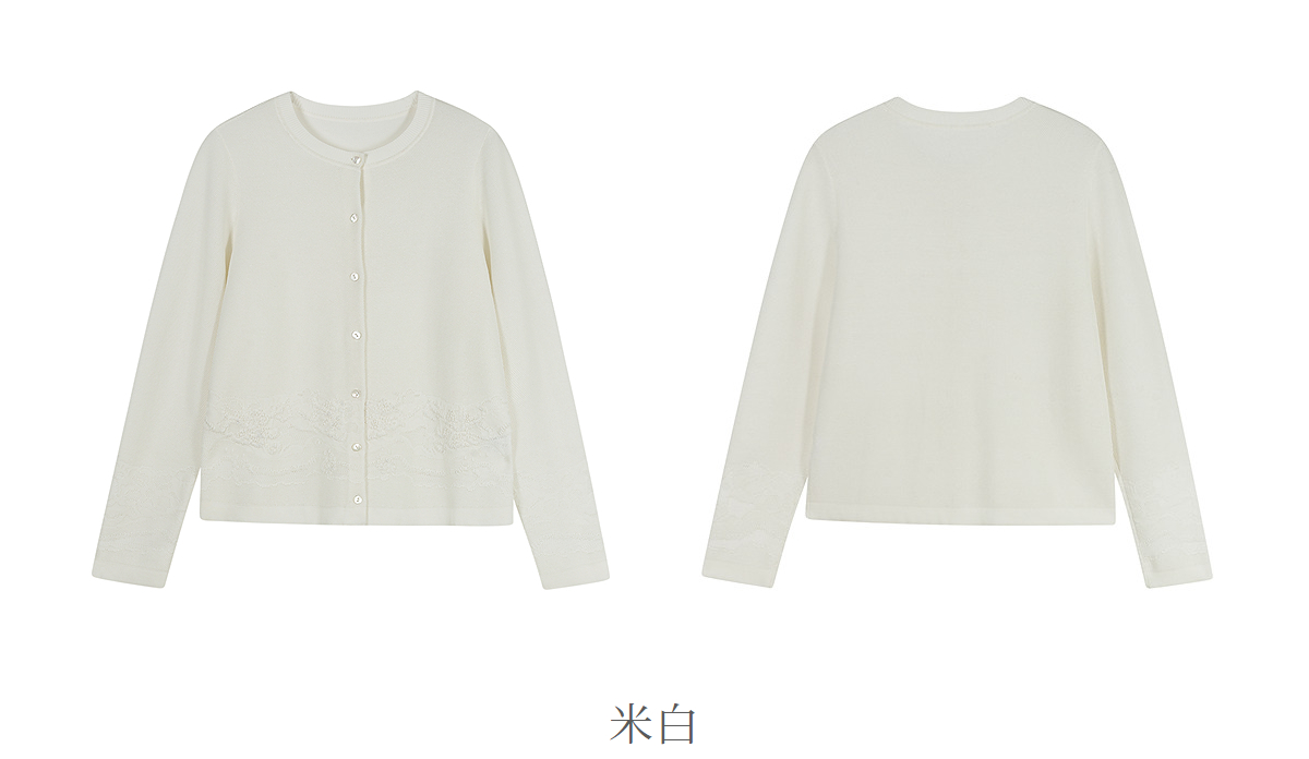 【林栖设计小店】手工绣花|米白优雅百搭气质宽松透气2026春新款毛织外套1961093
