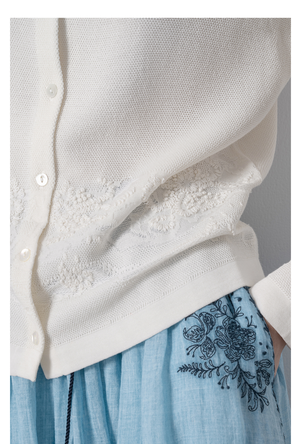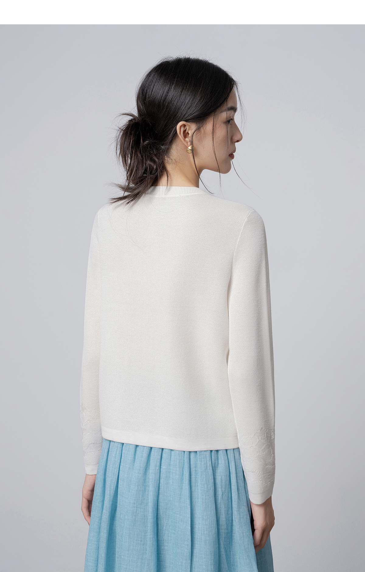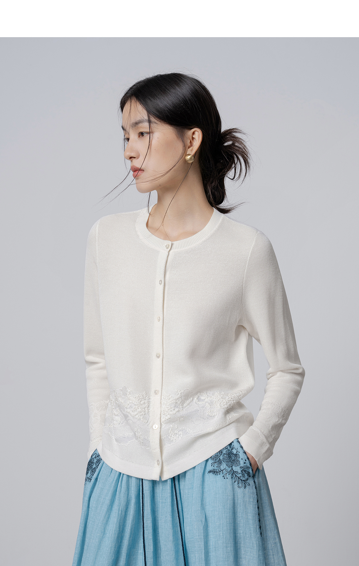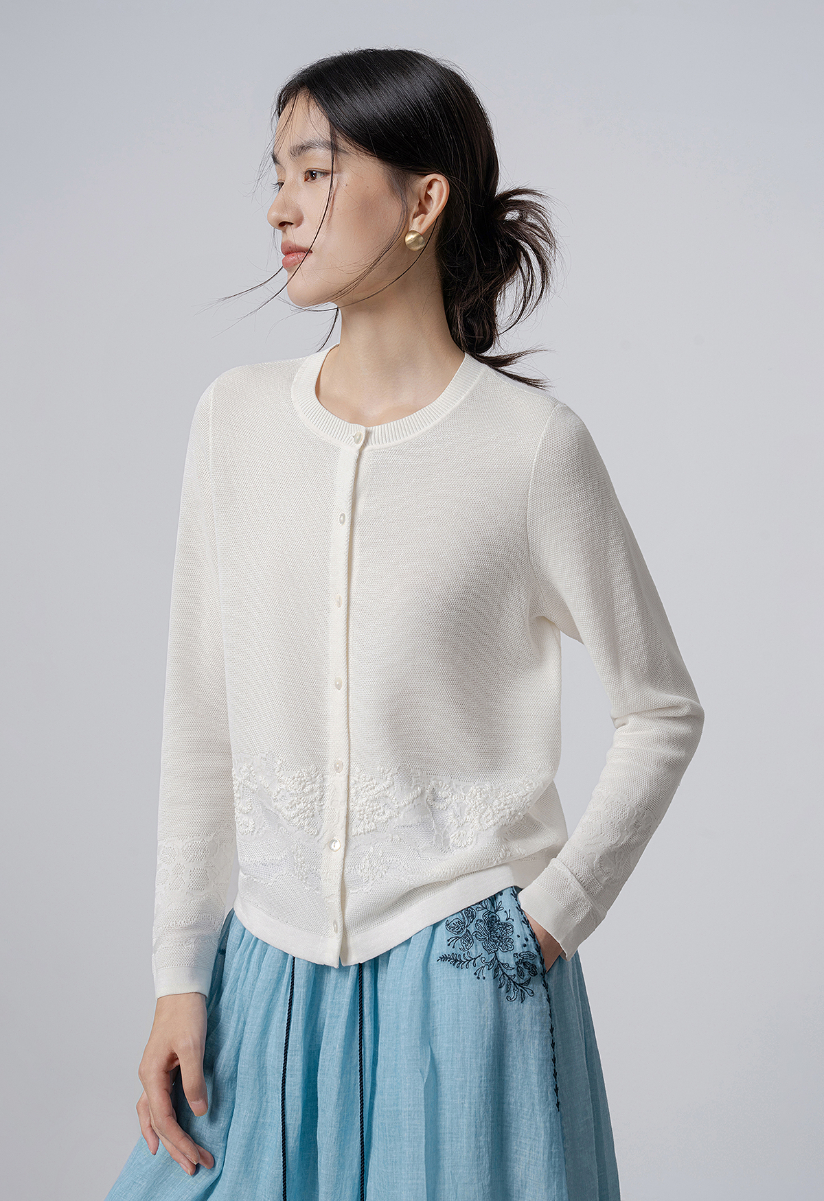 【林栖设计小店】手工绣花|米白优雅百搭气质宽松透气2026春新款毛织外套1961093