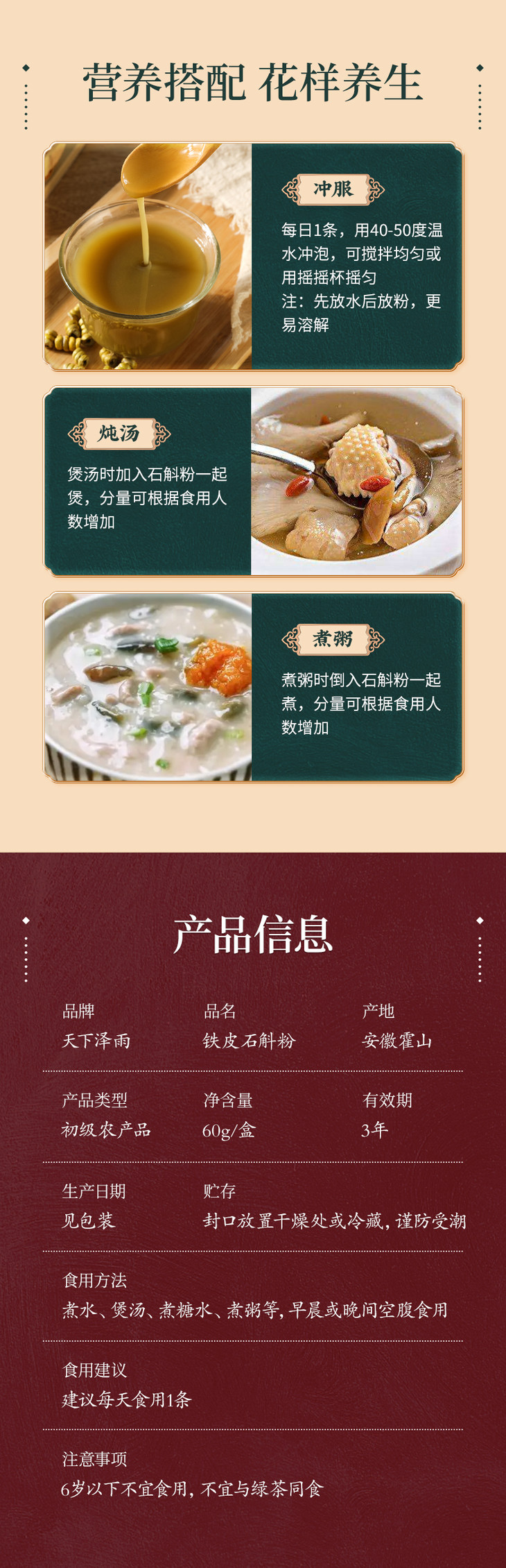 入汤:可在汤即将煮好时加入适量的铁皮石斛粉,美味又滋补。