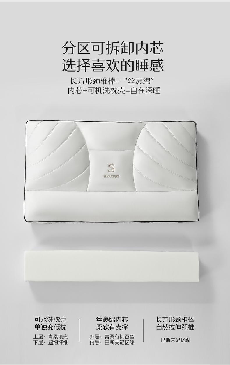 水星家纺A类抑菌青桑有机蚕丝枕头