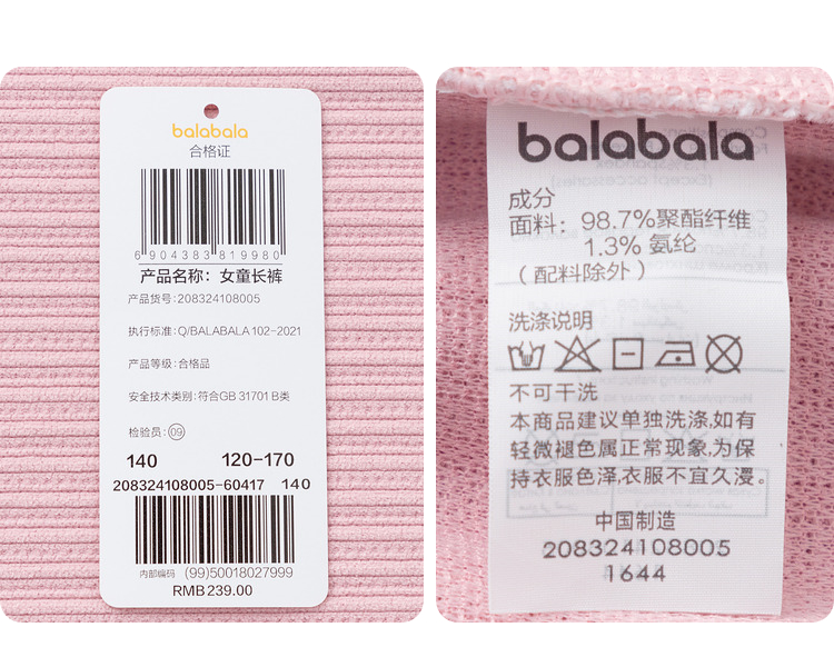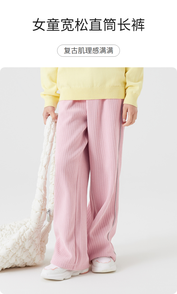 巴拉巴拉童装女童长裤儿童宽松直筒裤秋季新款裤子复古休闲裤
