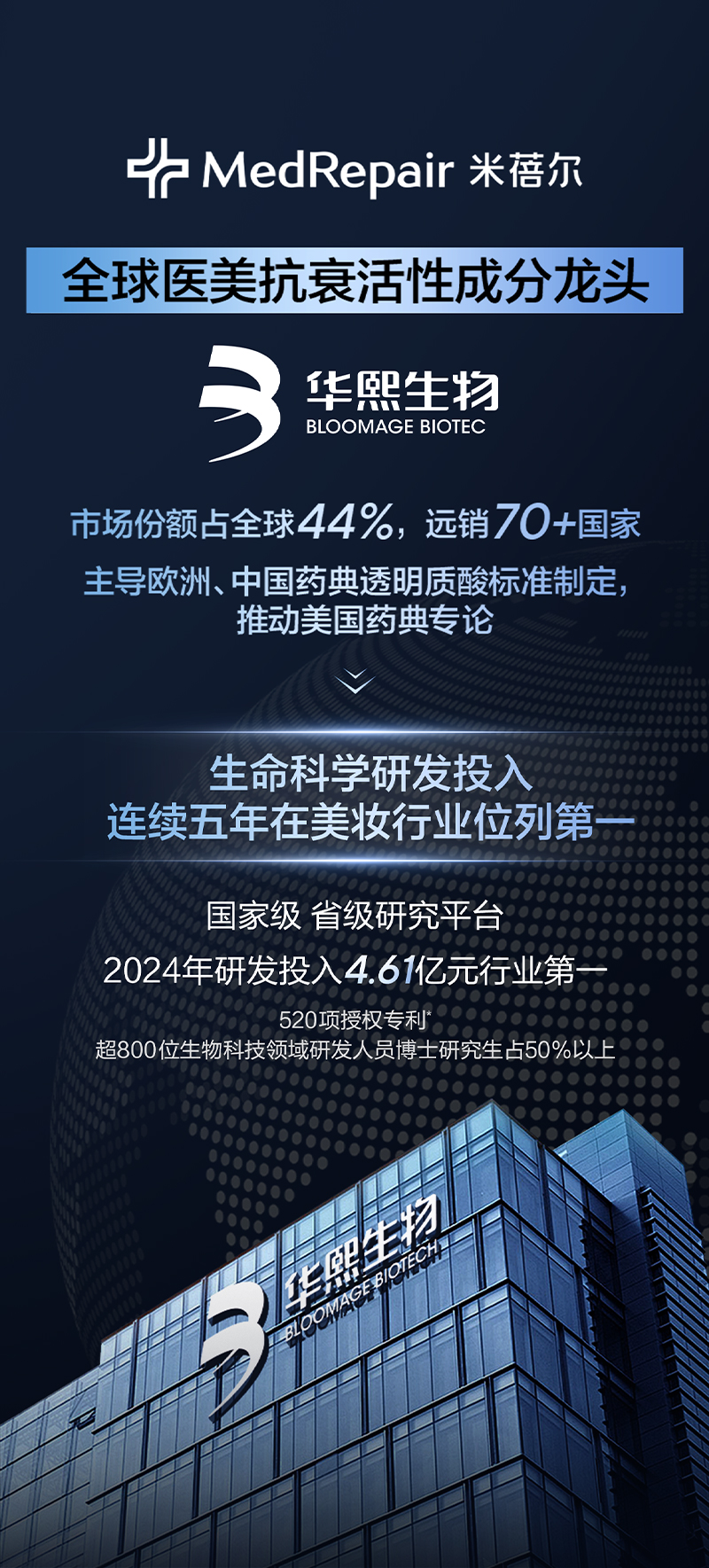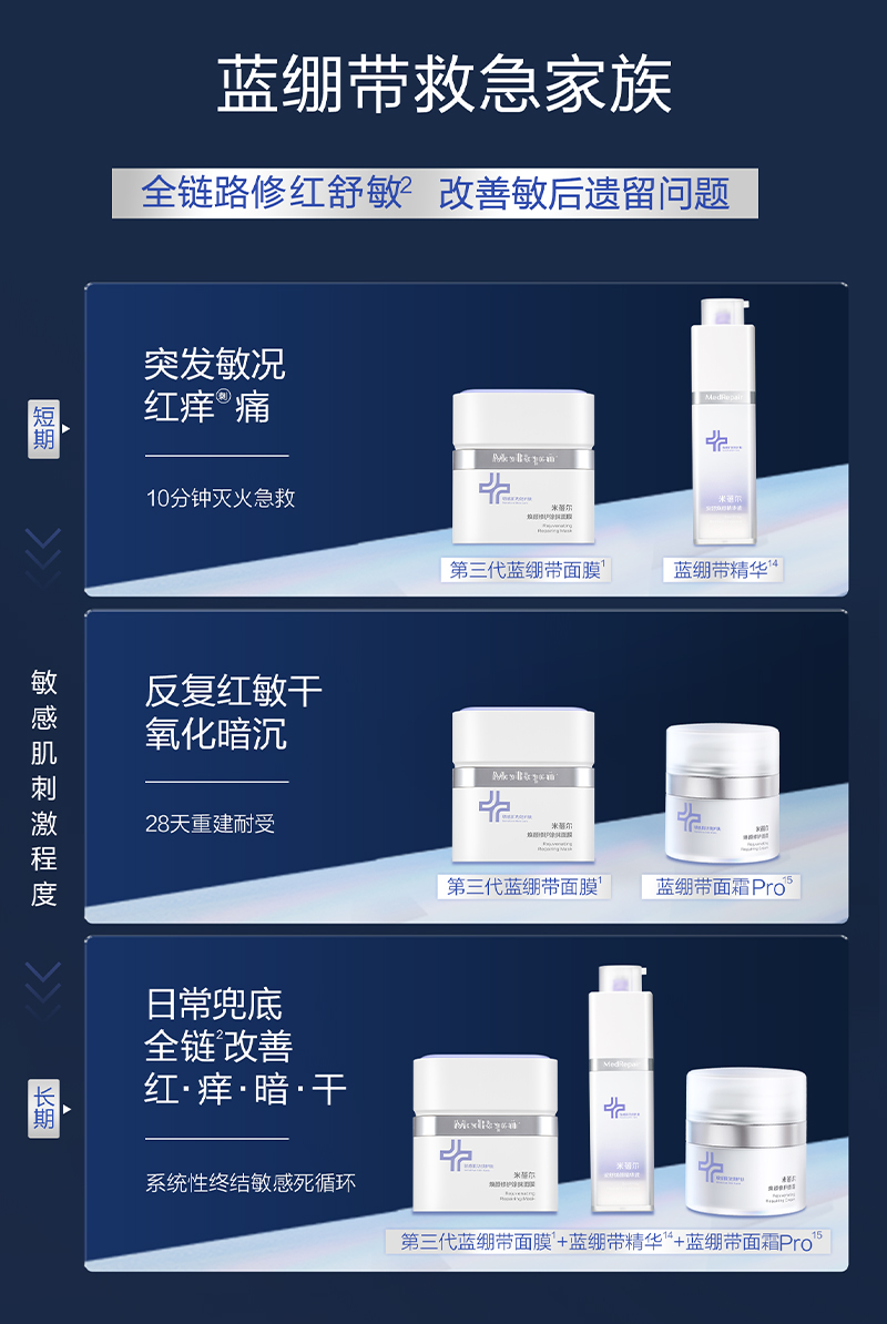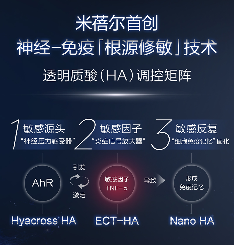 华熙生物集团旗下——米蓓尔MEDREPAIR,源自华熙生物多年潜心研发,“精于修复,专注美丽”为消费者解开敏肌密码,4D-HA四重活水创专利配方取代市场主成分,提供解决敏肌问题的方案。