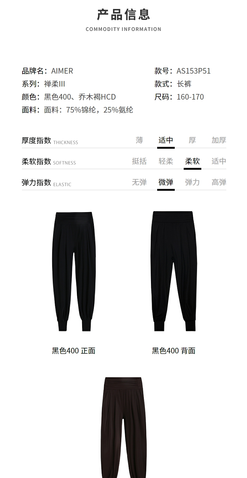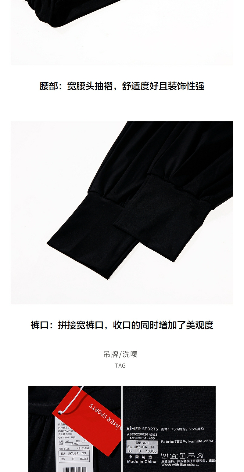 【直发】爱慕运动外穿女士禅柔III夏季高腰纯色瑜伽宽松收口长裤AS153P51
