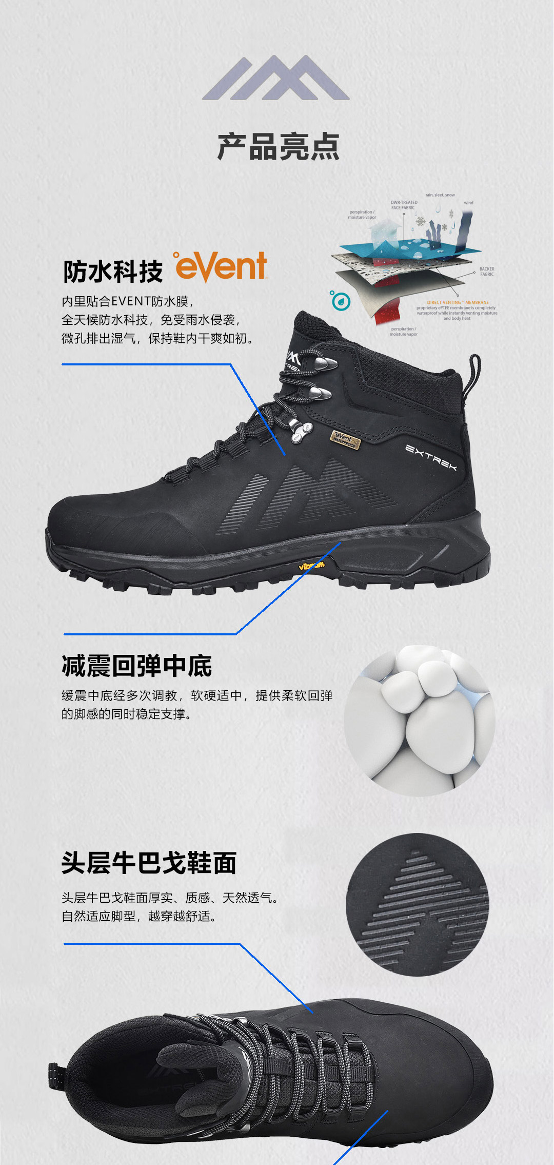 天越Vibram 湿冰止滑EVENT防水登山鞋(男款)