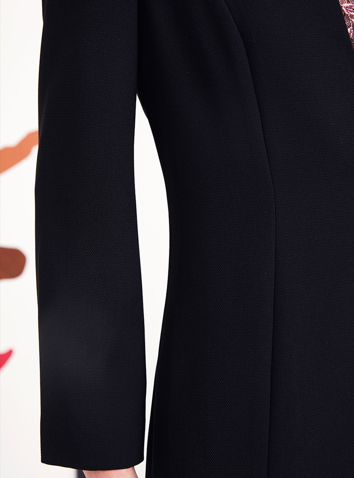 皮尔卡丹女黑色长袖秋季连衣裙时尚假两件职业装一步裙P93DL01B3