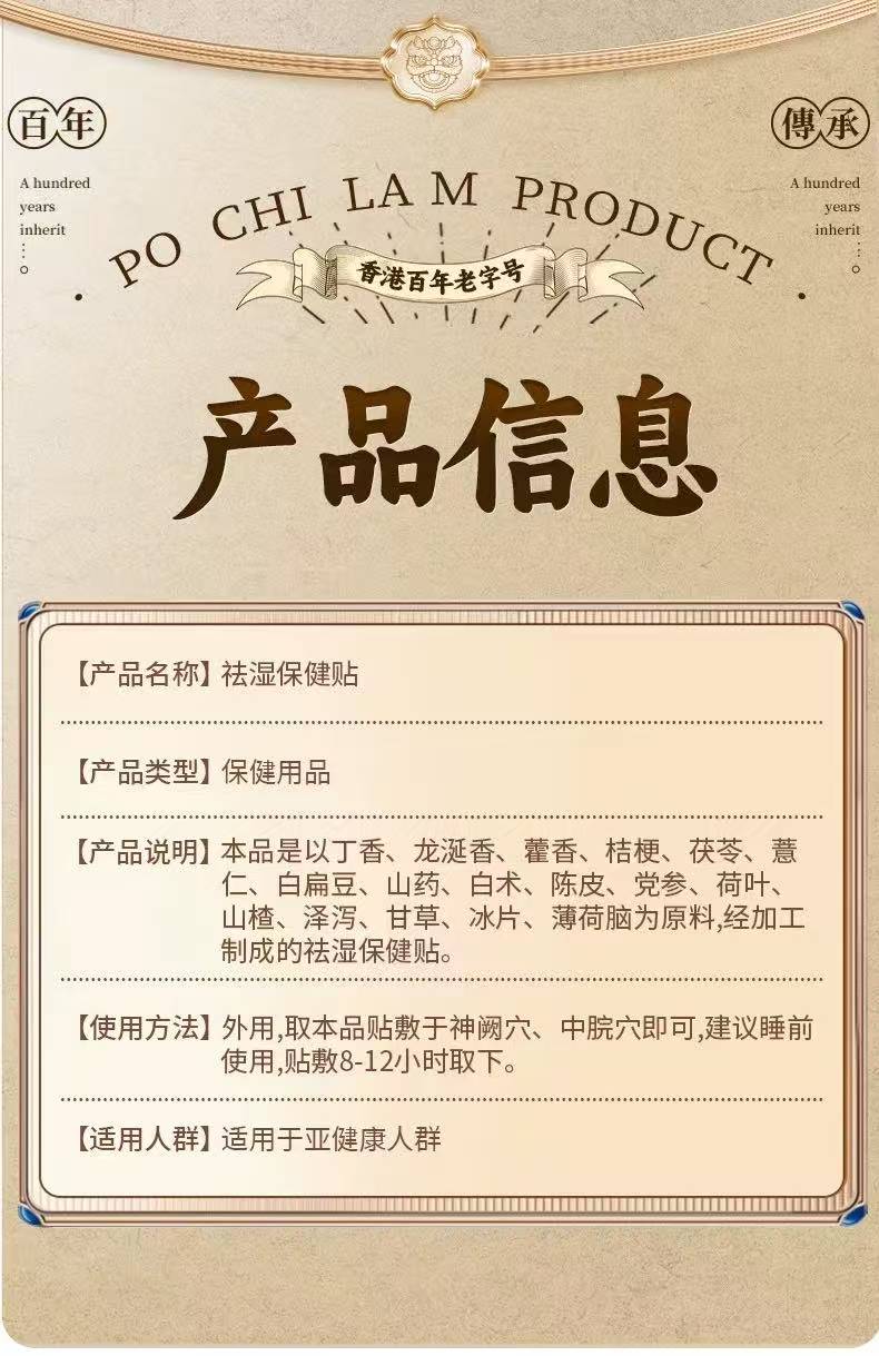 热卖中!香港老字号宝芝林祛湿保健贴 草本提取制成祛湿肚脐贴1盒/6贴