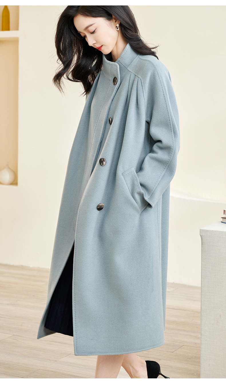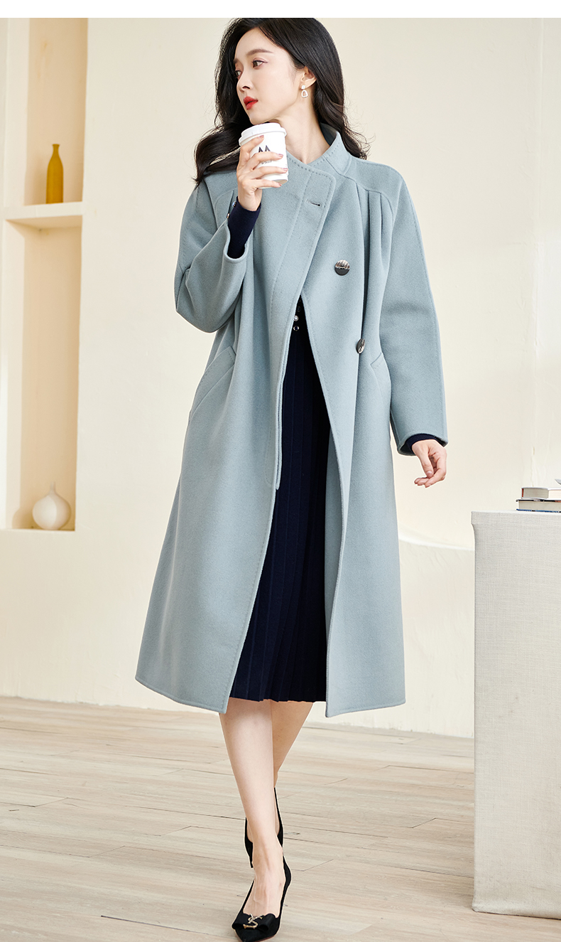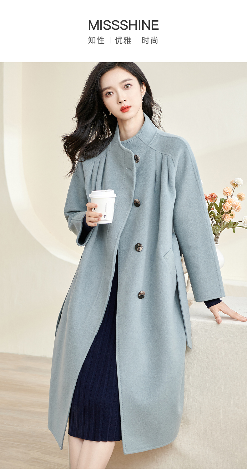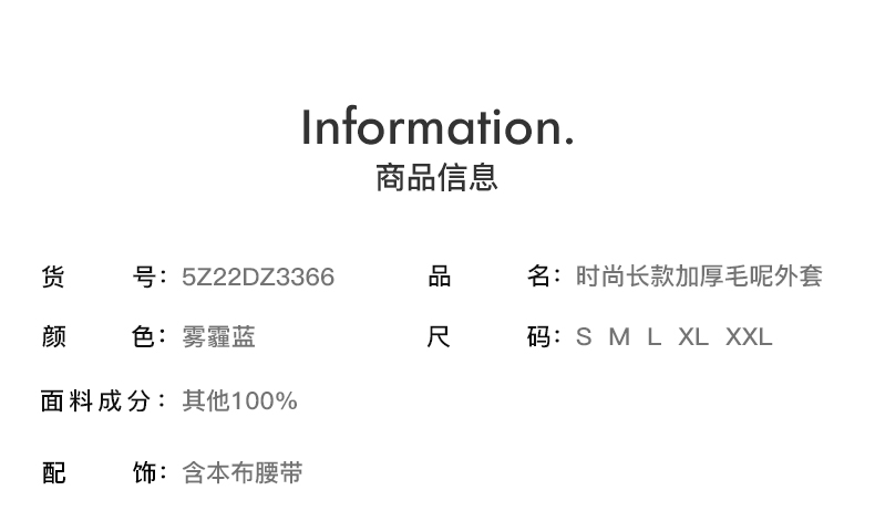剩S/M/L/XL/XXL 米思阳2025冬季新款时尚简约纯色毛呢外套宽松收腰长款大衣女3366