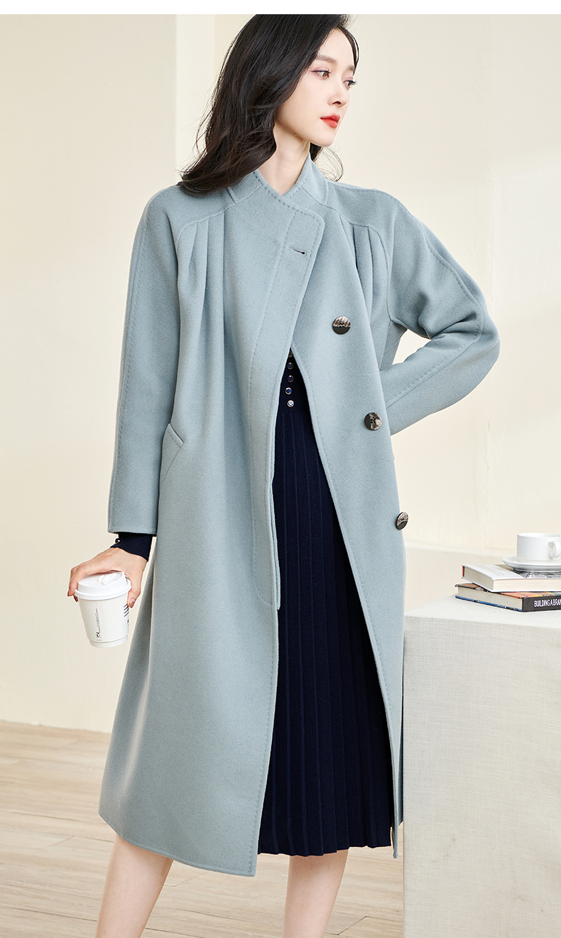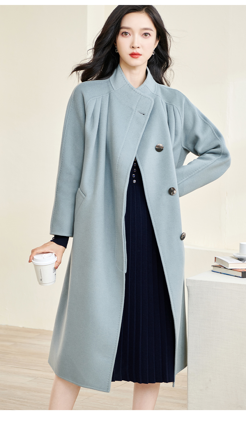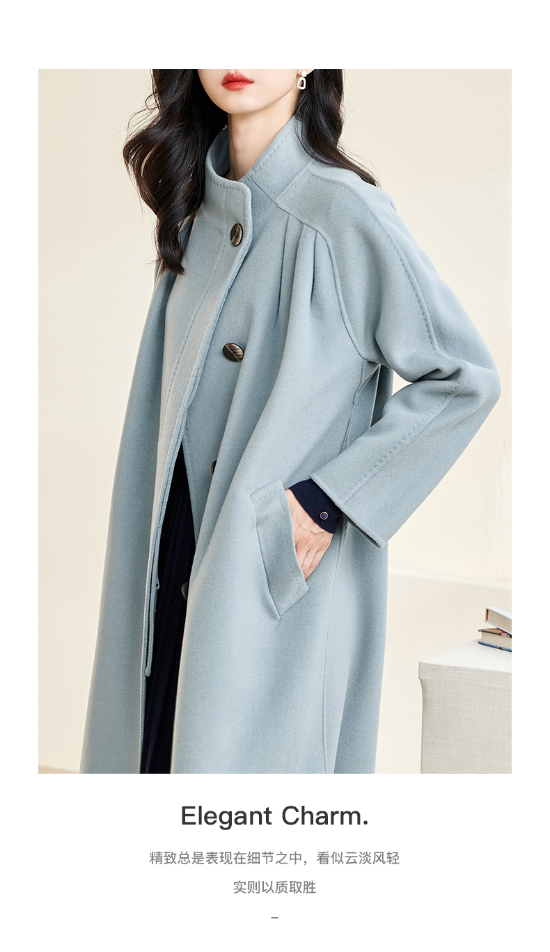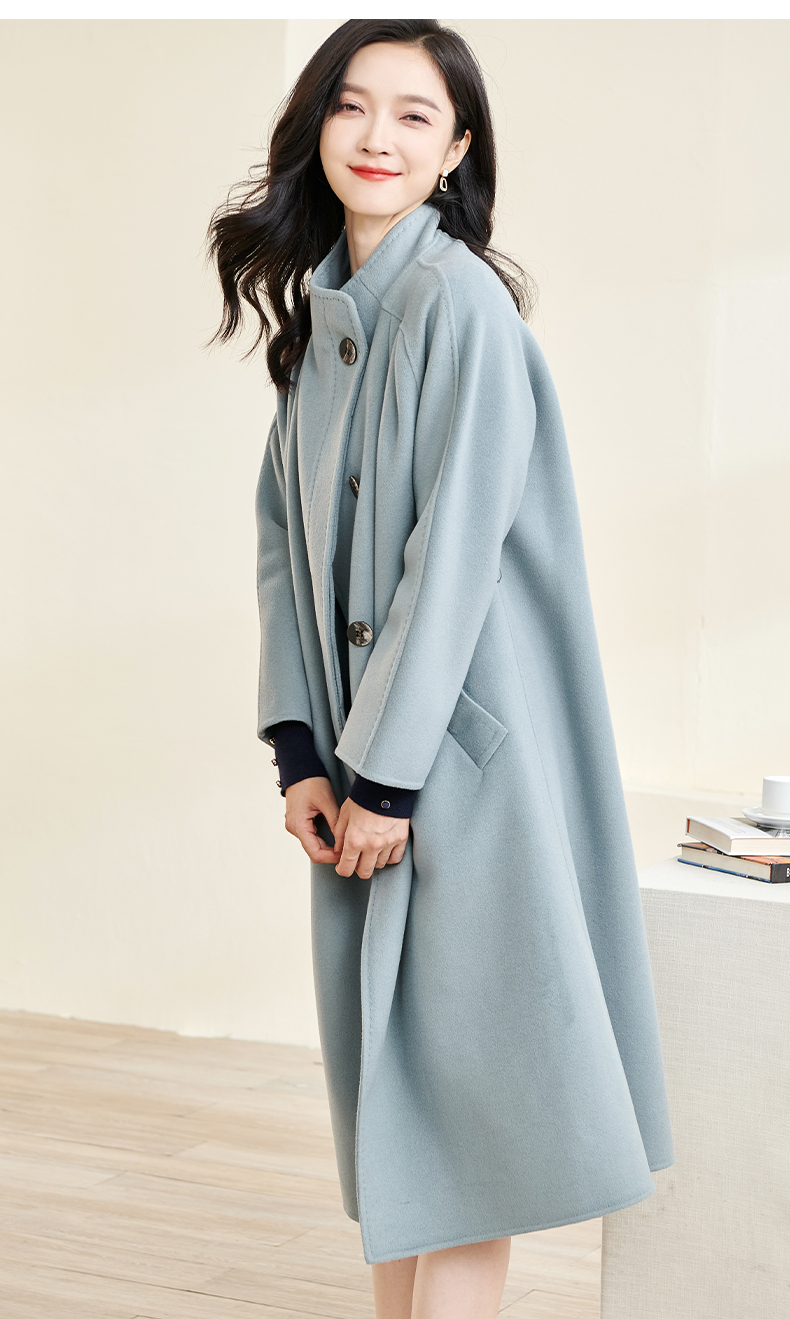 剩S/M/L/XL/XXL 米思阳2025冬季新款时尚简约纯色毛呢外套宽松收腰长款大衣女3366