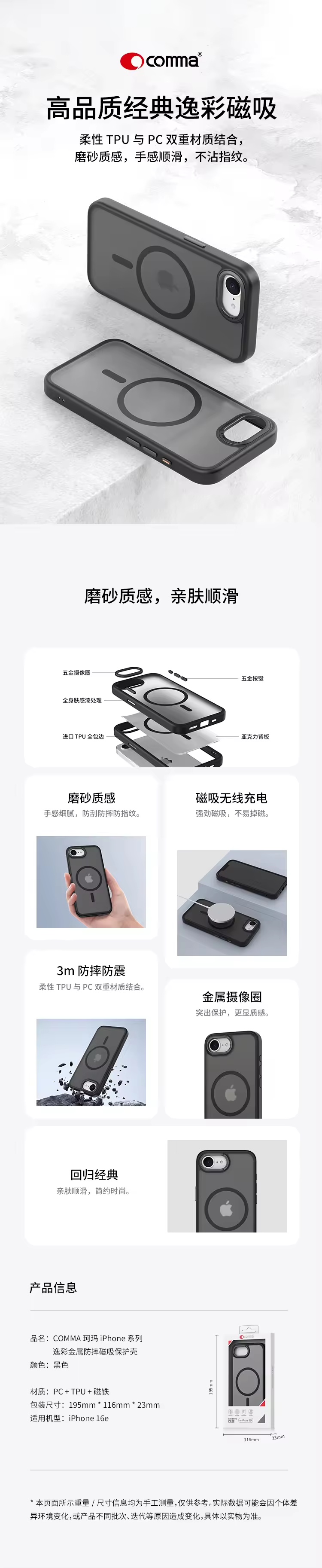 保护壳 适用于 iPhone 16e 逸彩磁吸 黑色 - comma