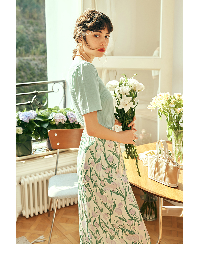 OLrain欧芮儿法式碎花半身裙女夏季2023年新款高腰荷叶边开叉裙子