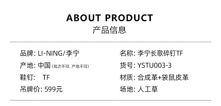 SFS李宁长歌TF碎钉袋鼠皮足球鞋低帮男成人训练比赛人草YSTU003