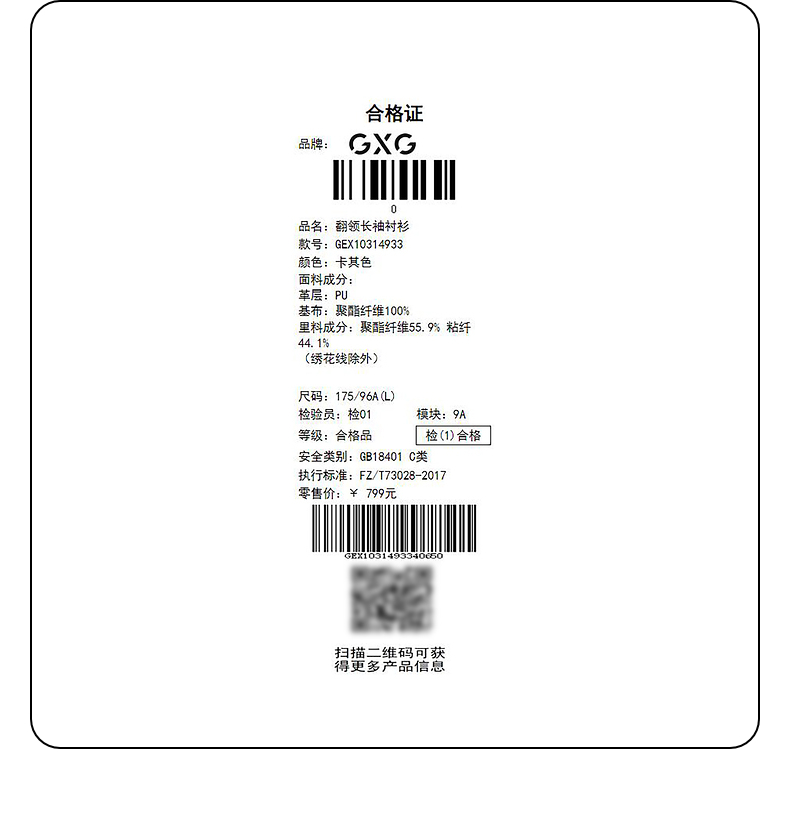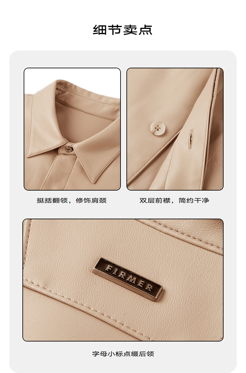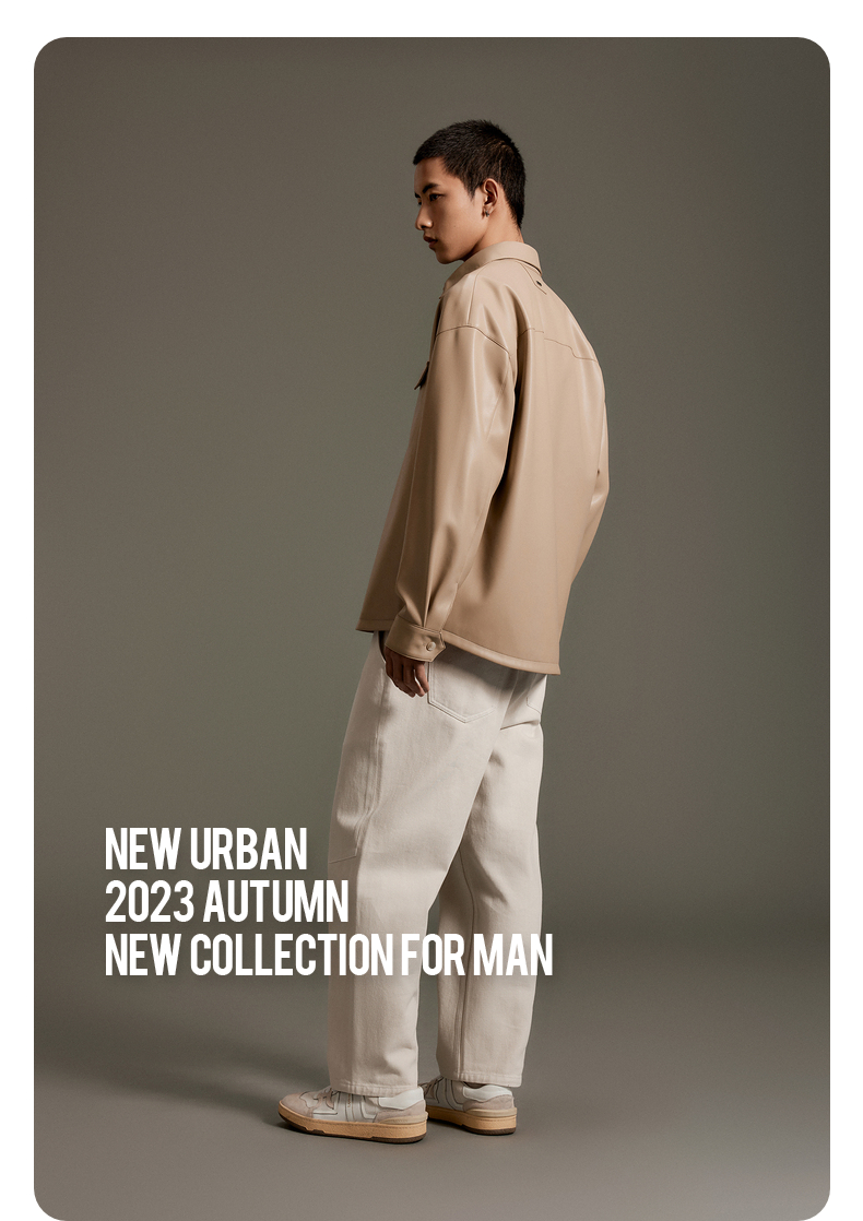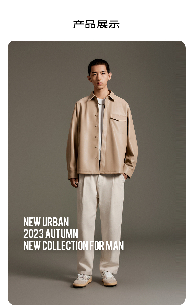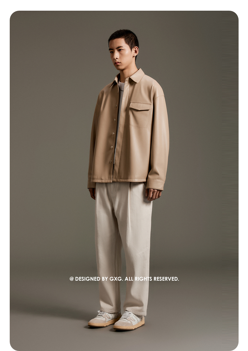 GXG男装 卡其色PU皮夹克休闲压线衬衫夹克外套 GEX10314933