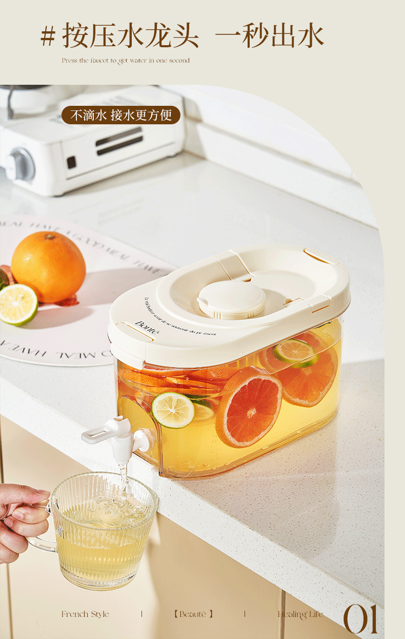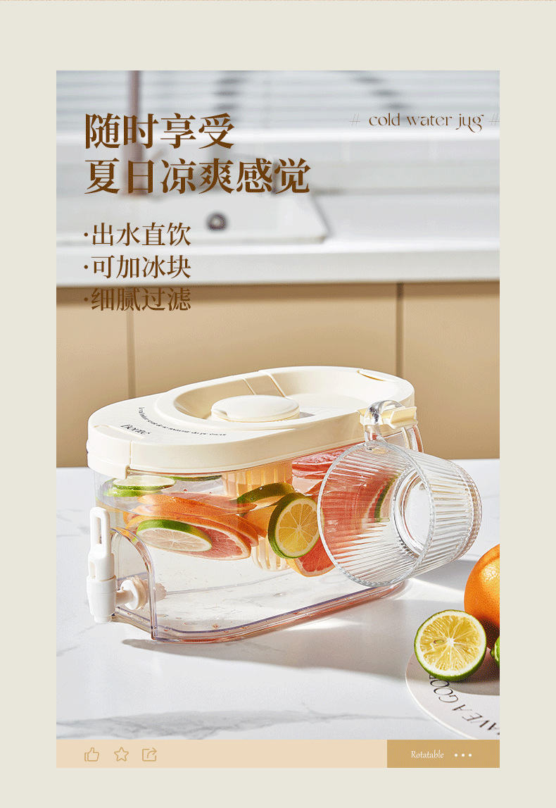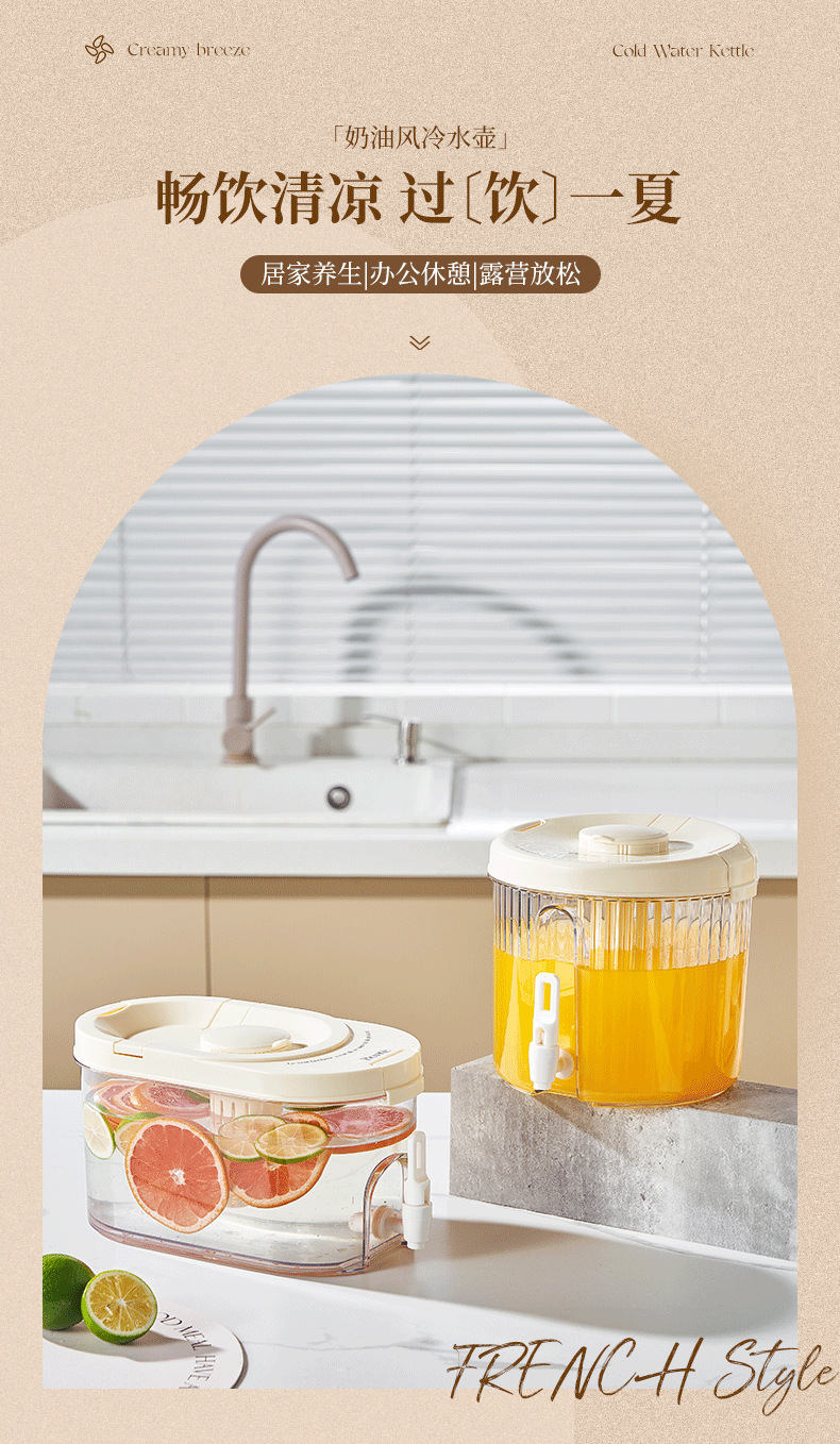 「两款可选!颜值派」夏季露营冷水壶冷泡柠檬水果茶花茶凉水壶带龙头奶油风冰箱冷水壶餐饮用具