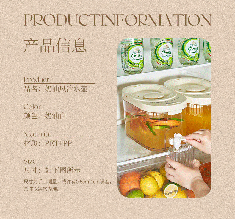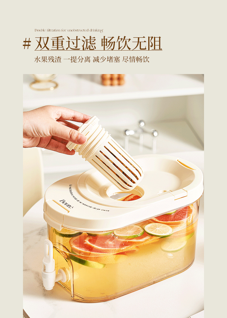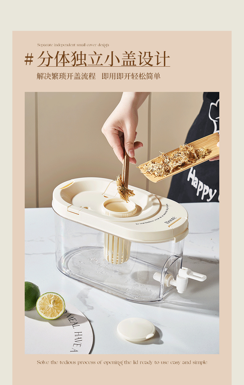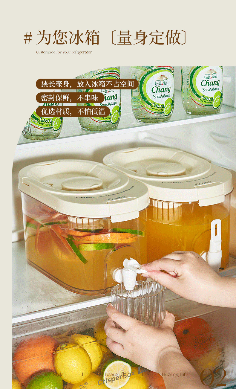 「两款可选!颜值派」夏季露营冷水壶冷泡柠檬水果茶花茶凉水壶带龙头奶油风冰箱冷水壶餐饮用具
