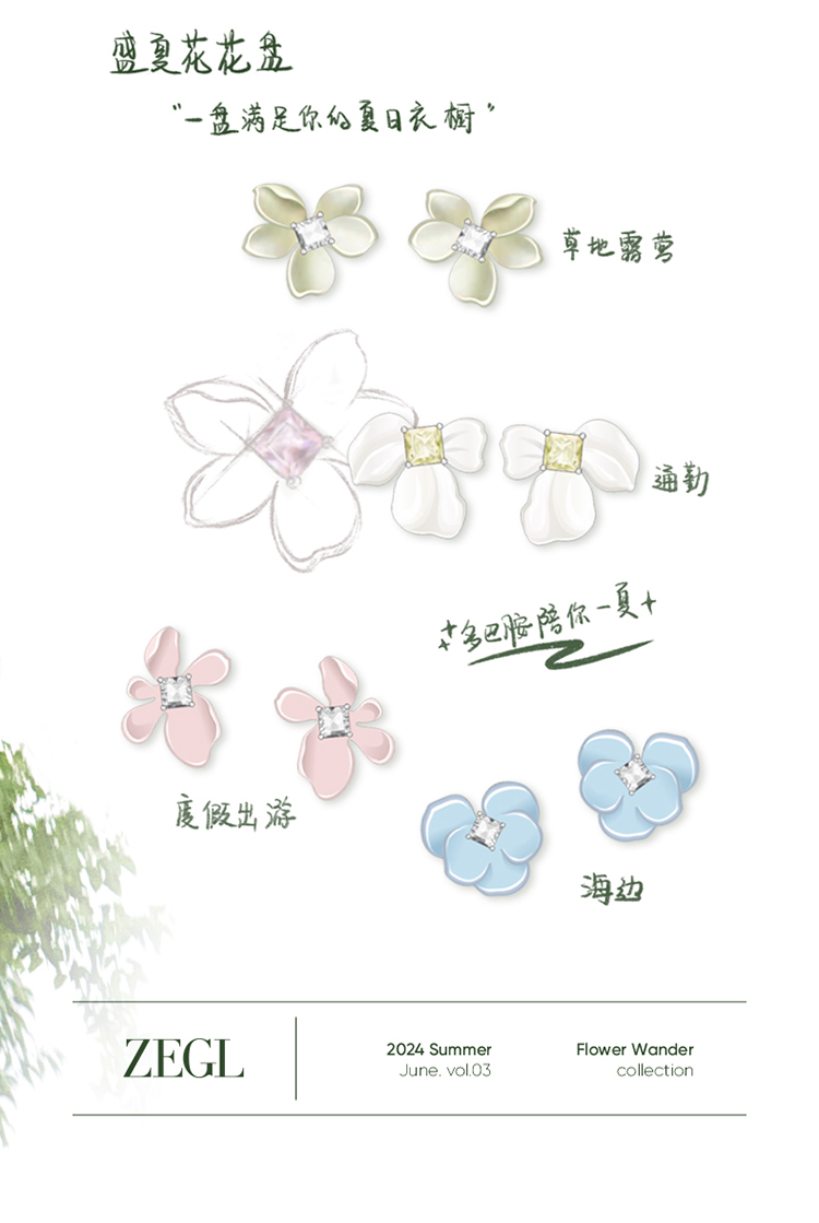 ZEGL设计师花花耳妆盘系列花朵耳钉女多巴胺耳环小众独特可爱耳饰