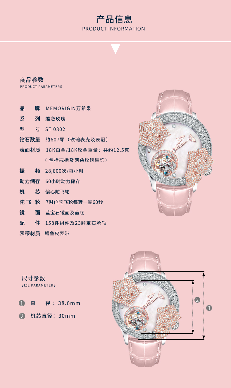 MEMORIGIN 万希泉陀飞轮 蝶恋玫瑰系列 金钻珠宝腕表