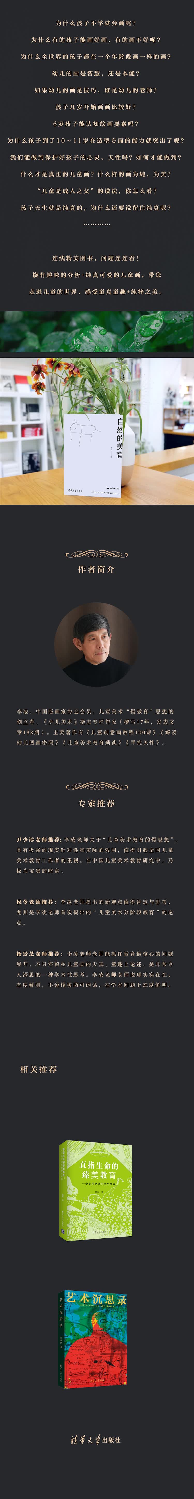 一本书写完了,总会有些感想。《自然的美育》与2019年出版的《寻找天性》一样,虽然写的是幼儿美术方向,但不是写怎么教孩子画画,而是想通过幼儿美术这个视角,从生物学概念和进化论观念说美育、谈幼教。书中说得最多的是孩子怎么在美育的滋润下健康快乐地成长,而不是讲美术知识和技法。