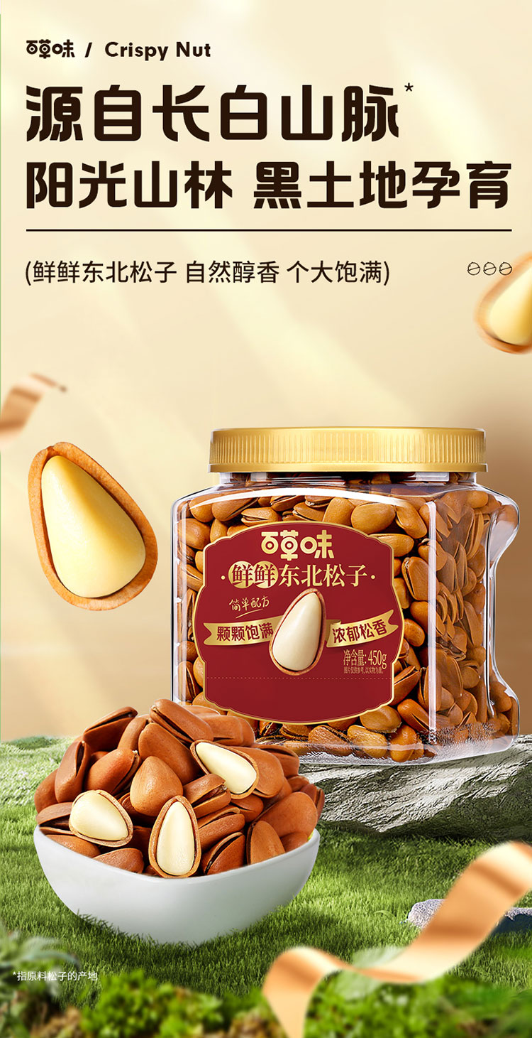 【百草味】鲜鲜东北松子450g(罐装)(1150等级)-DY