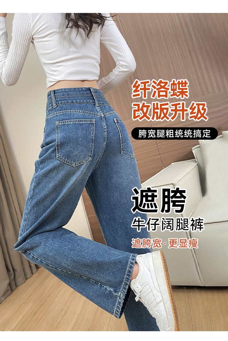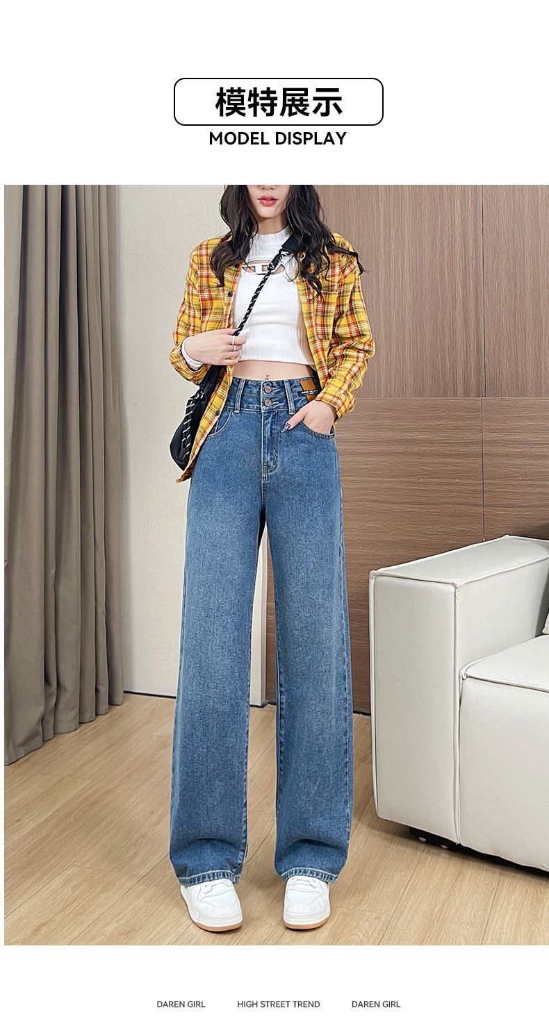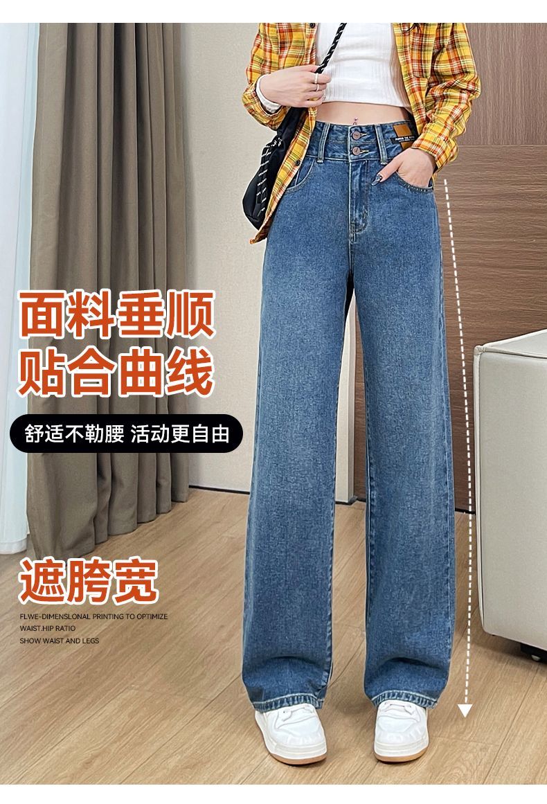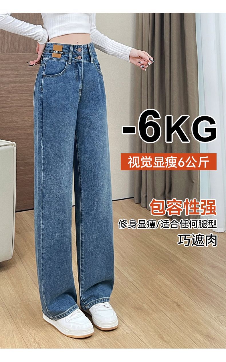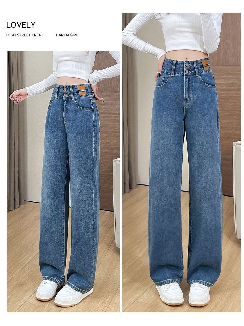 回力高腰牛仔裤女2025新款春秋季小个子宽松显瘦直筒休闲阔腿裤子