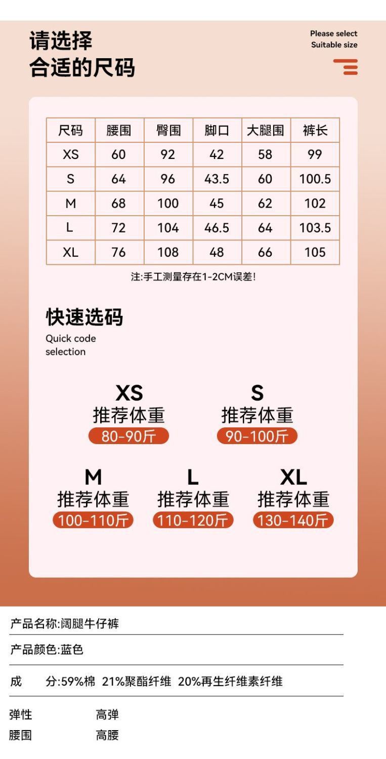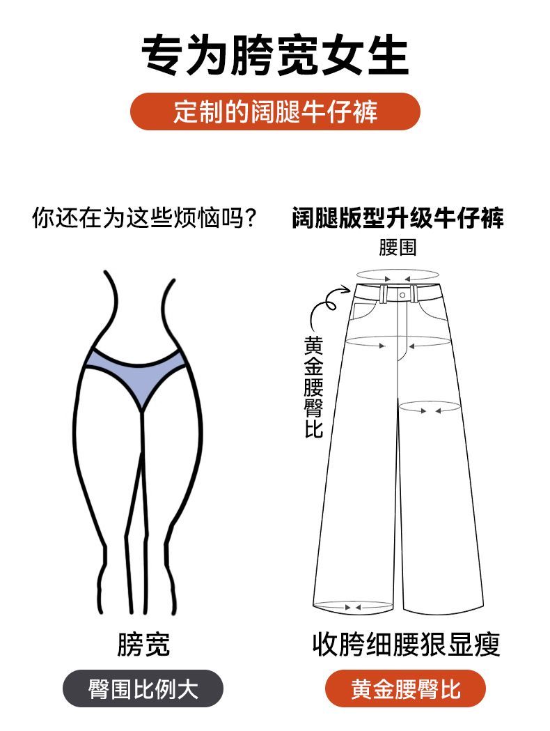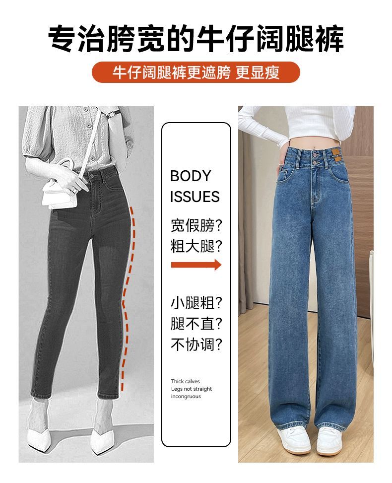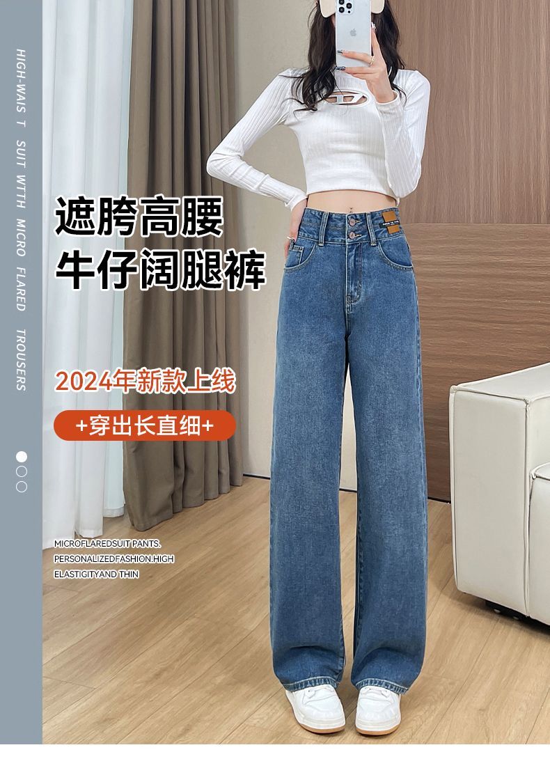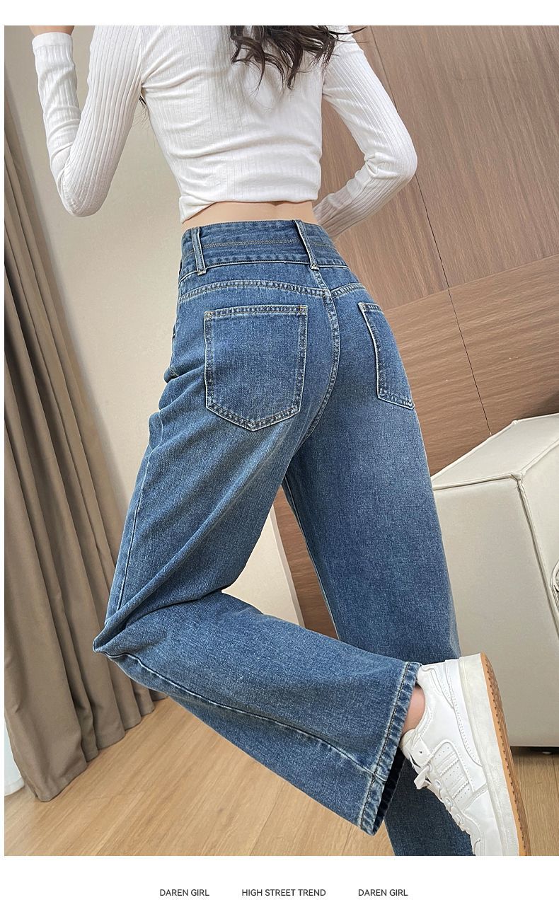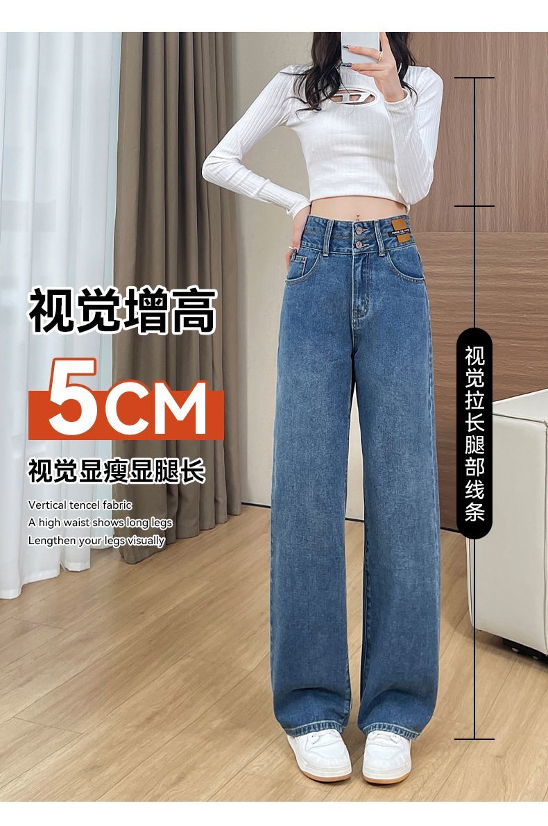 回力高腰牛仔裤女2025新款春秋季小个子宽松显瘦直筒休闲阔腿裤子