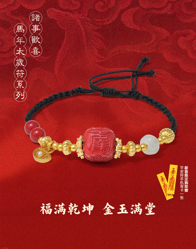 【马年太岁符 好运不打折】 钻石世家X心喜 诸事欢喜马年太岁符系列 朱砂天山翠项链/手链 朱砂太岁符 鸿运当头 六面吉文 金玉满堂 金玉招财【结缘定制、无质量问题不支持退换货】预计3-5天发货