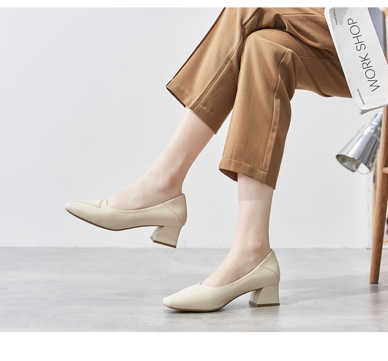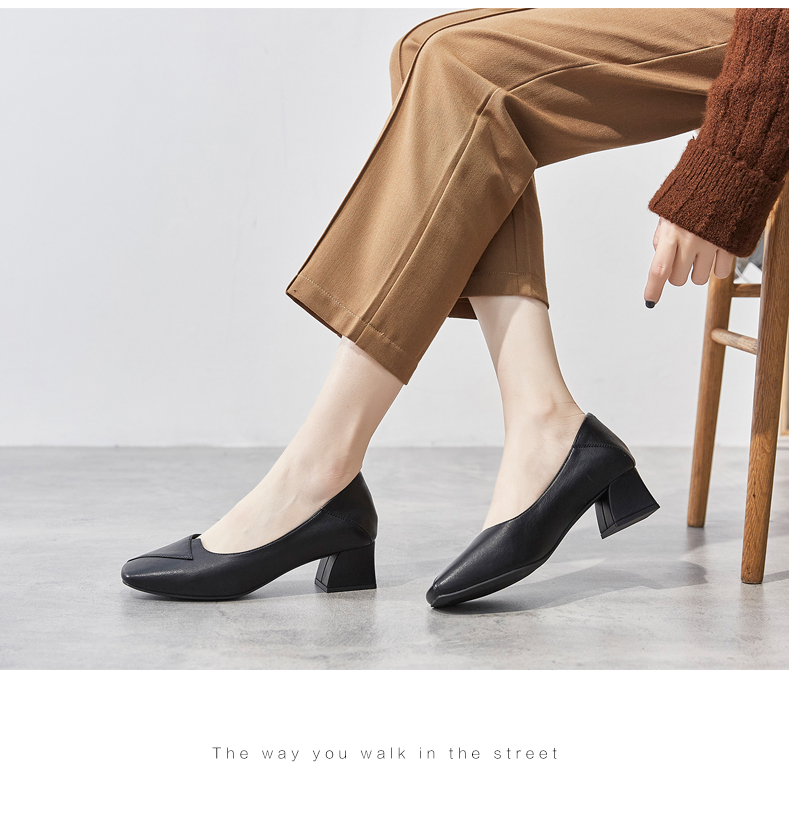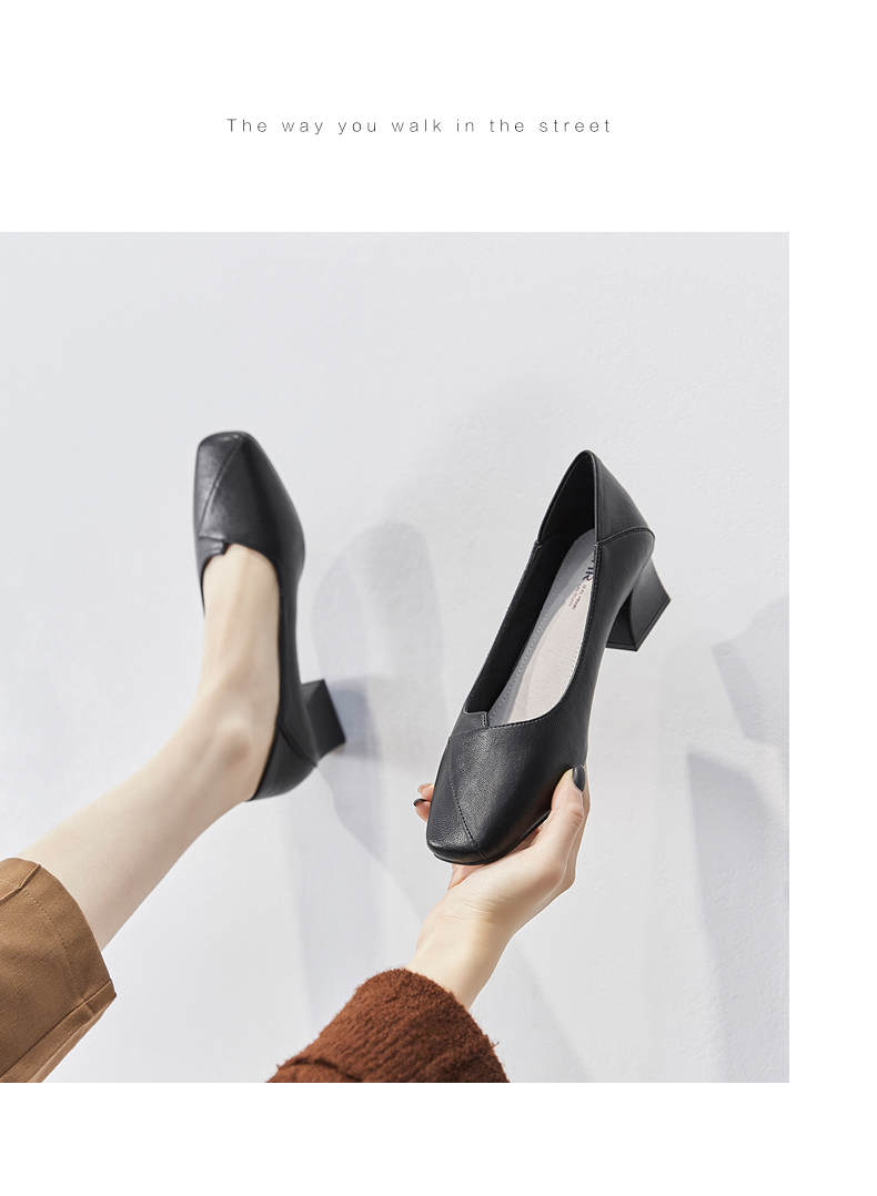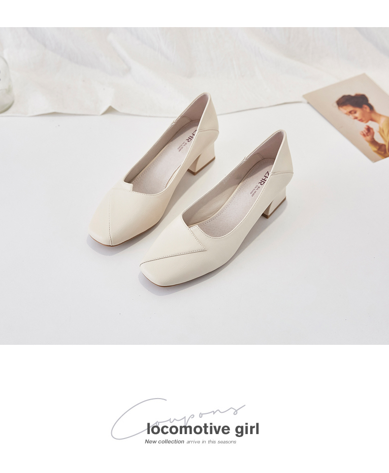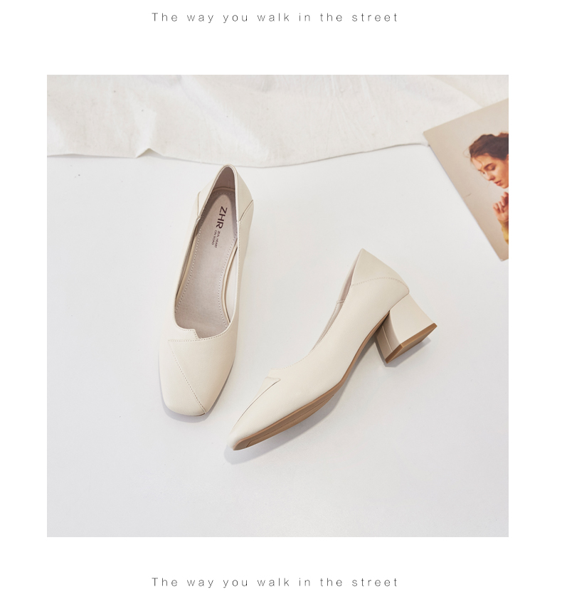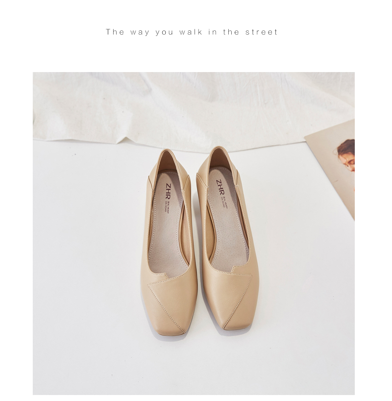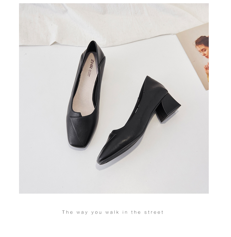 ZHR粗跟皮鞋女玛丽珍鞋子女单鞋女乐福鞋浅口女单鞋女鞋