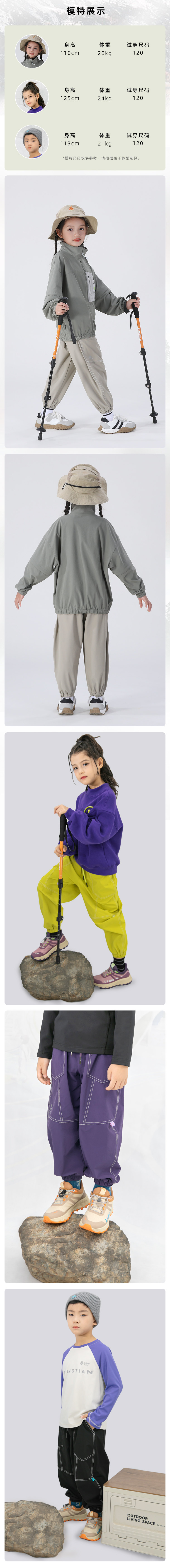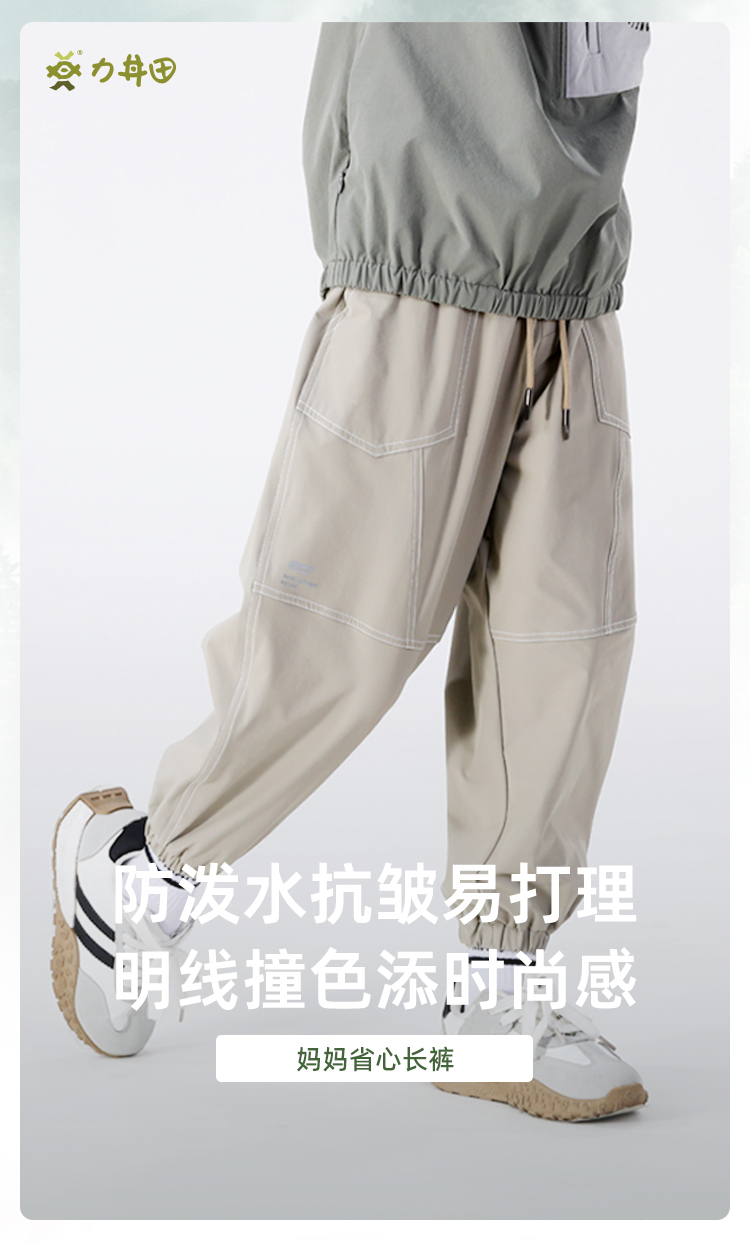 力丼田儿童户外防泼水明线撞色束脚长裤 攀山野 防泼水抗皱易打理 L2411X022CAYW