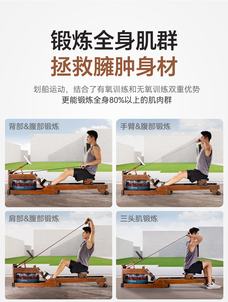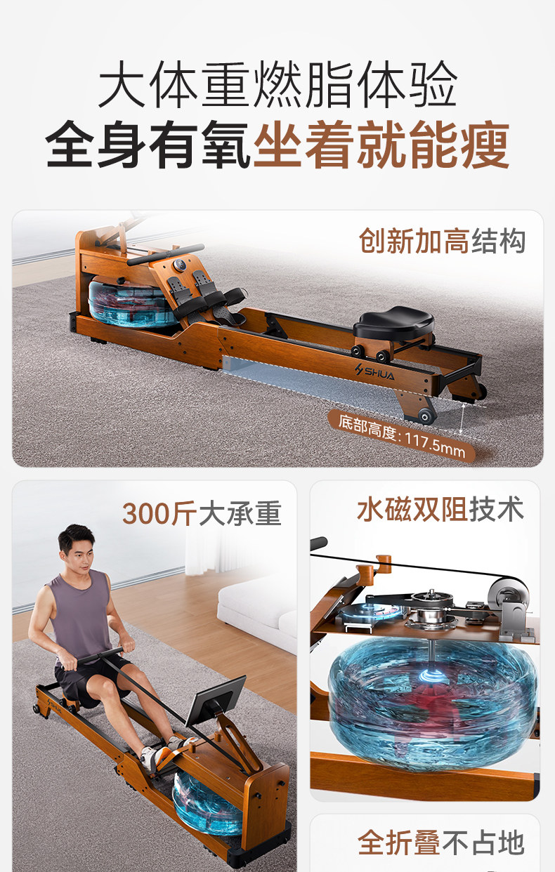 舒华划船机家用水磁双阻可折叠智能调阻健身器材有氧划船机R920