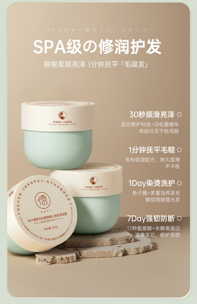 儒意白松露臻奢沁透免蒸发膜500g 女柔顺顺滑 改善毛躁 干枯烫染修复补水护发素 | 儒意官方商城