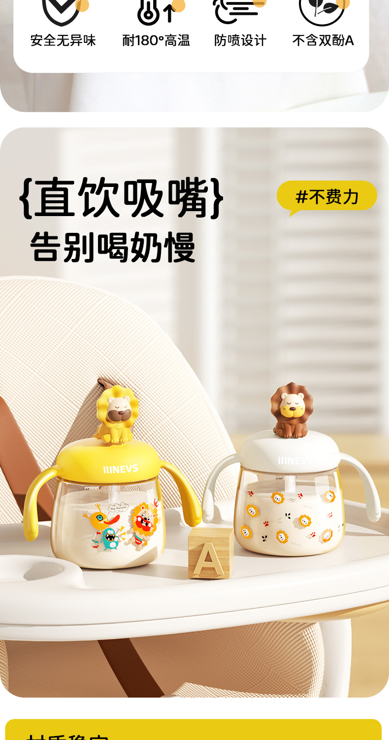NEVS/尼维森吸管学饮杯宝宝高颜值儿童水杯6个月喝水喝牛奶重力球