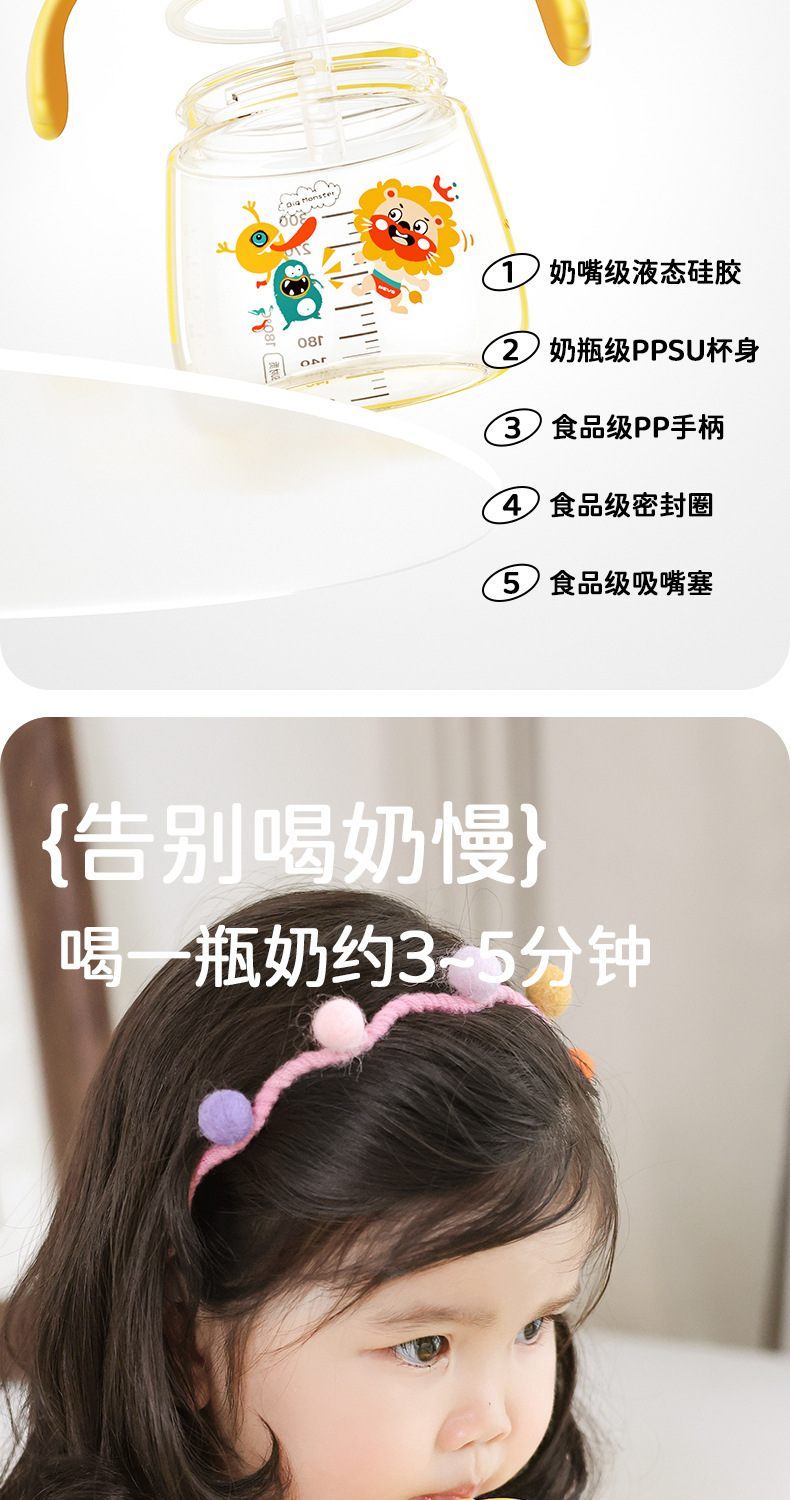 NEVS/尼维森吸管学饮杯宝宝高颜值儿童水杯6个月喝水喝牛奶重力球 商品图4