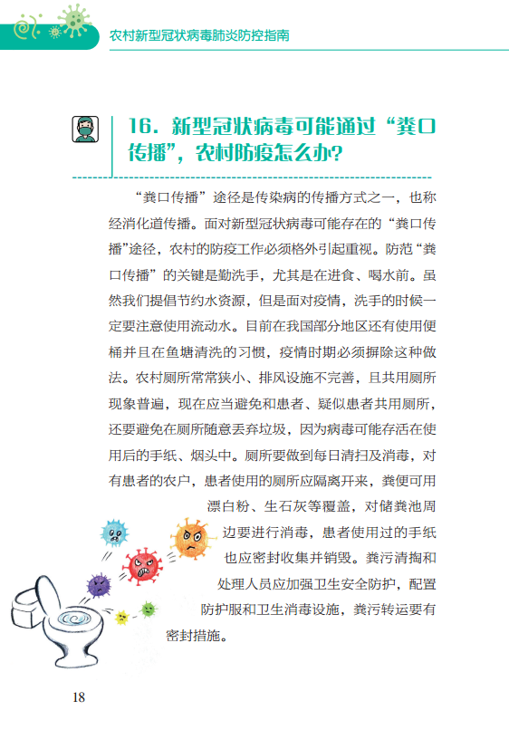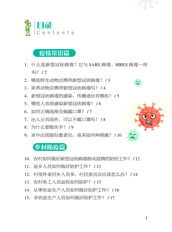 全书聚焦广大群众热切关注的焦点,结合农业生产和农村生活,通过问答形式,分为疫情常识篇、乡村防疫篇、养殖防疫篇、纠偏辟谣篇、法律法规篇五个部分,旨在普及宣传新型冠状病毒肺炎防控知识,增强广大农村居民及农业从业人员的防控意识,引导他们掌握科学的防控方法,指导农村疫情监督监测、疫病防控人员开展工作,采取积极的防控措施,保障农业生产健康发展。