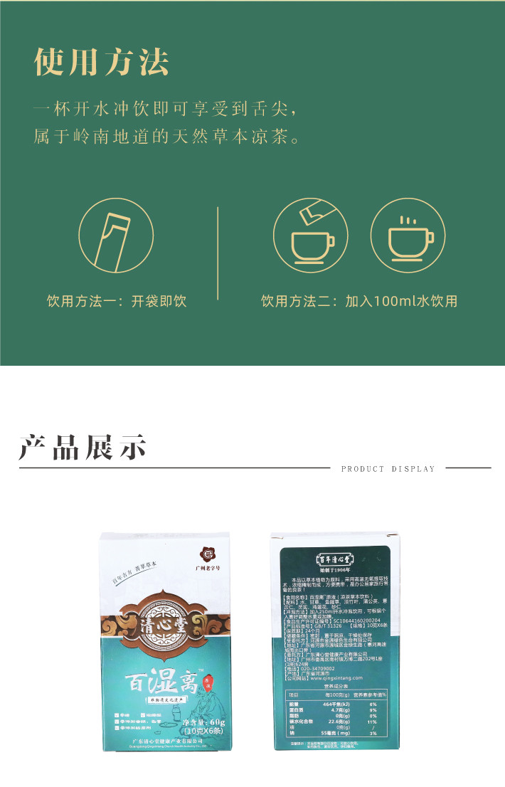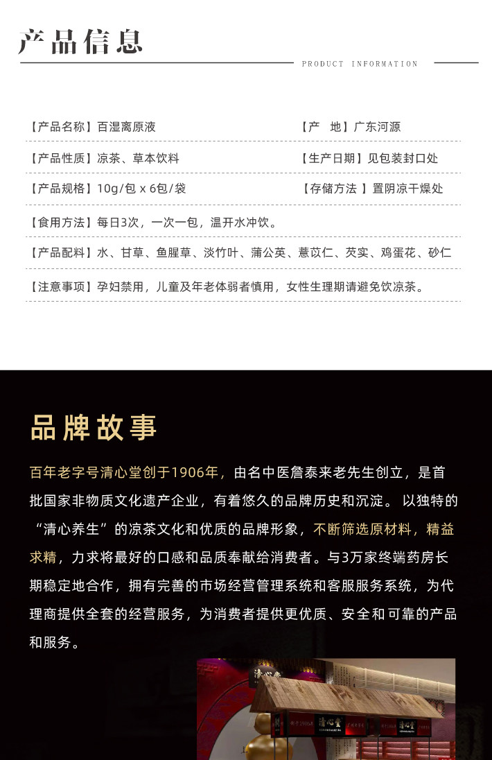 岭南地道的古法炮制凉茶-百湿离原液 10g*6条