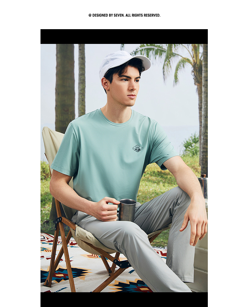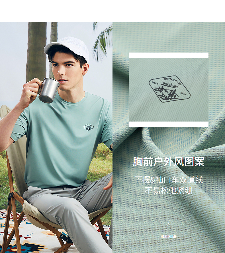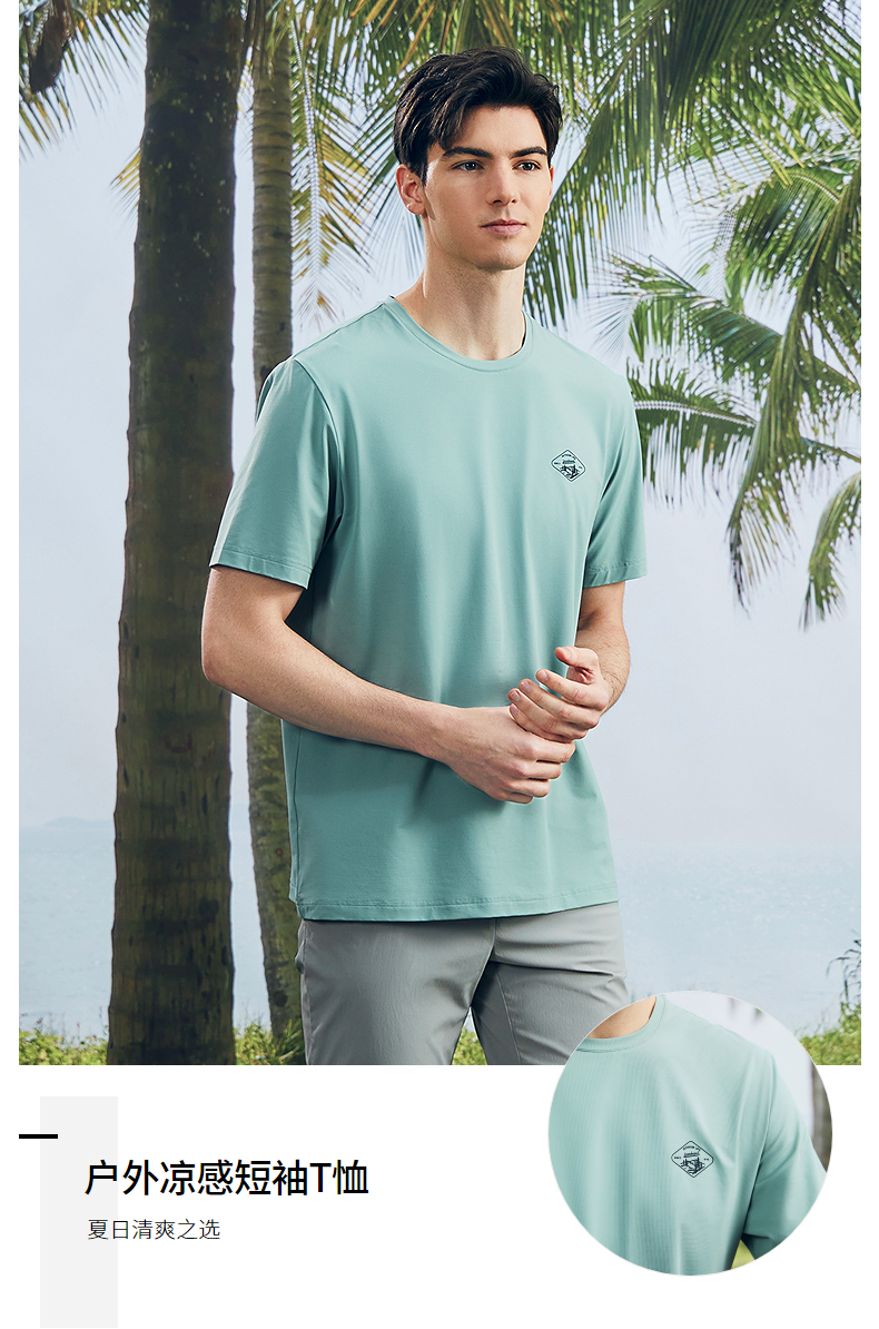 柒牌凉感短袖T恤男2024夏季新款户外休闲弹力舒适中青年圆领上衣 126T73320